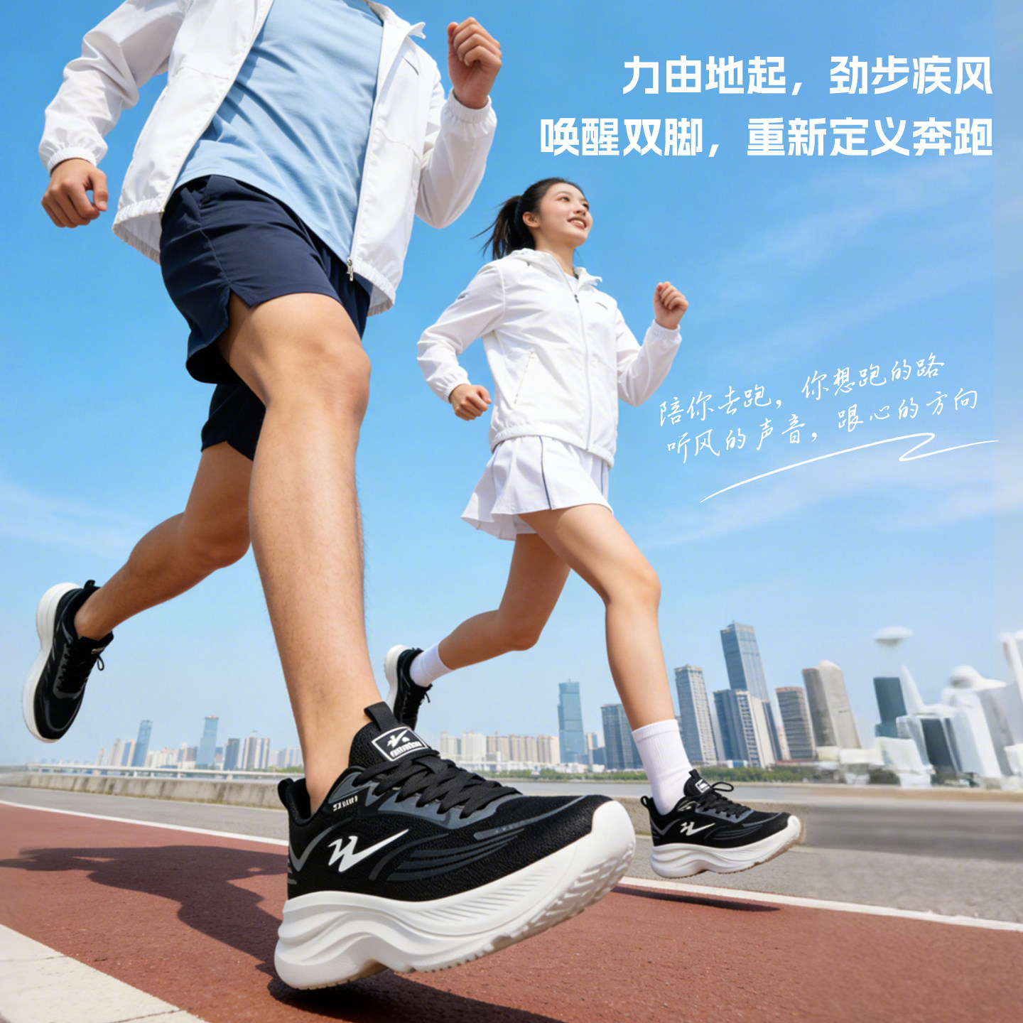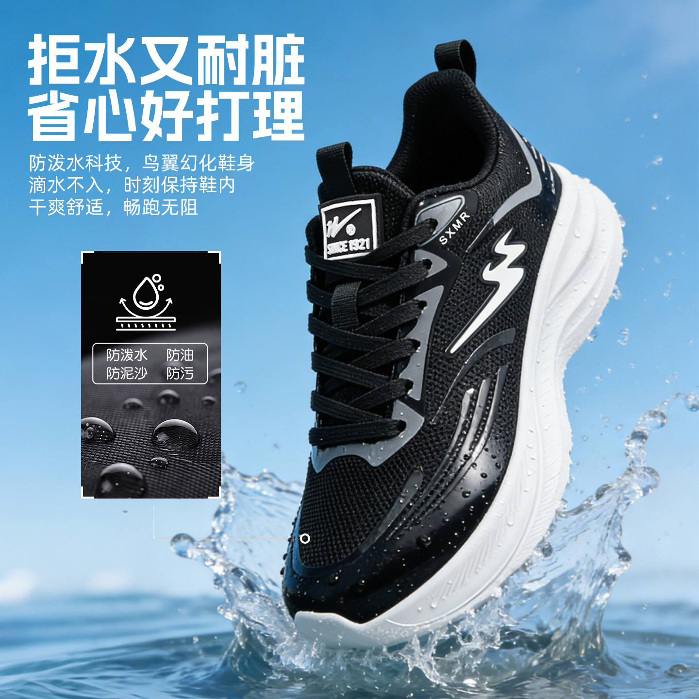 双星跑步鞋男款初中生2026新款透气轻便减震夏薄款黑色男士运动鞋