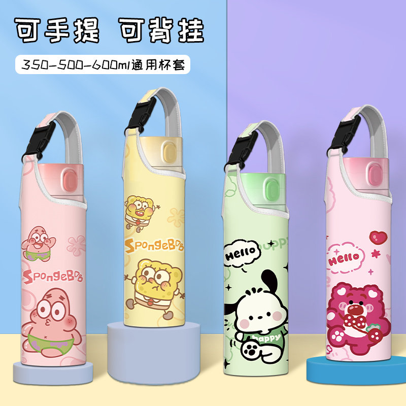 保温杯保护套便携式可背带斜挎水杯袋儿童外出隔热保温防摔保温套