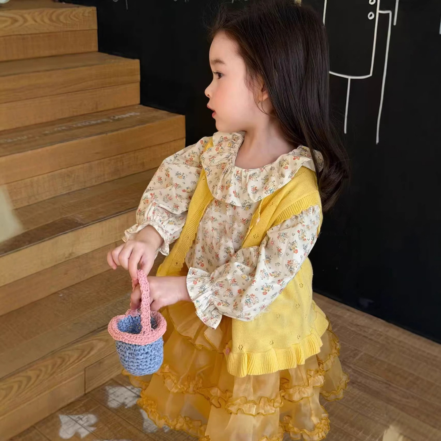 韩版童装女童毛衣2026新款春季洋气女宝宝超好看黄色针织马甲上衣
