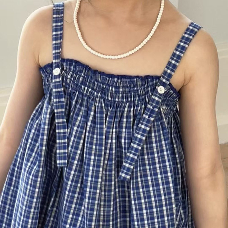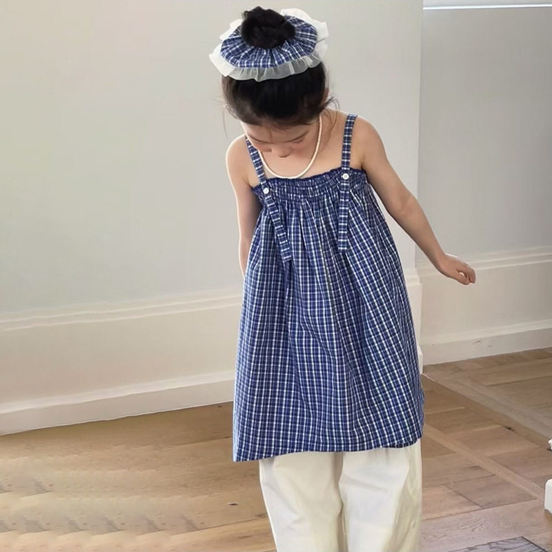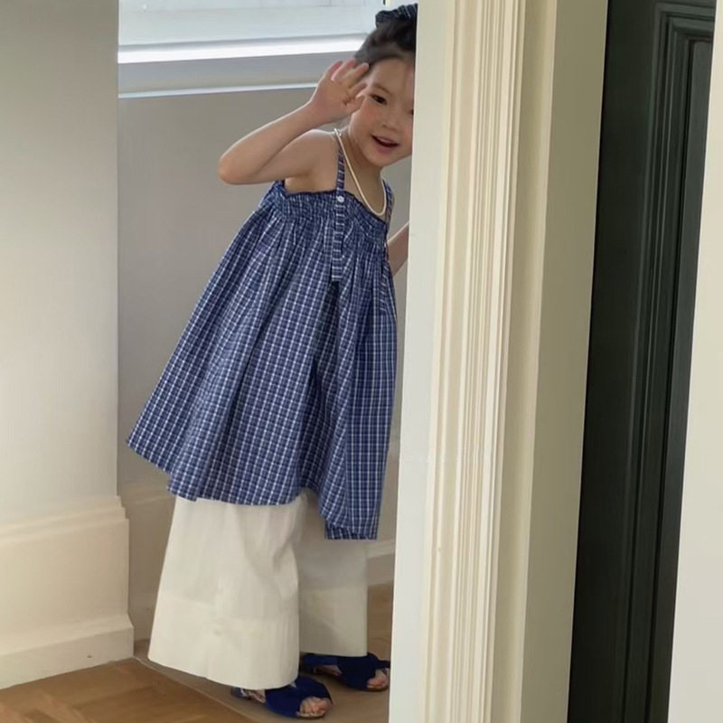 女童夏装薄款套装2026新款韩版女宝宝格子吊带裙白色阔腿裤两件套