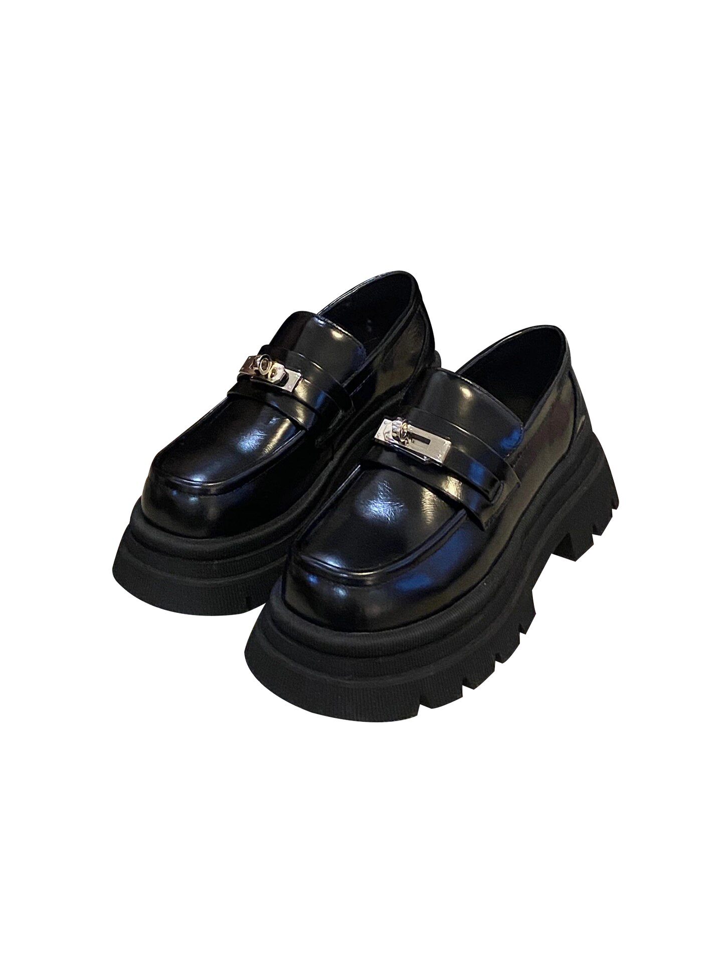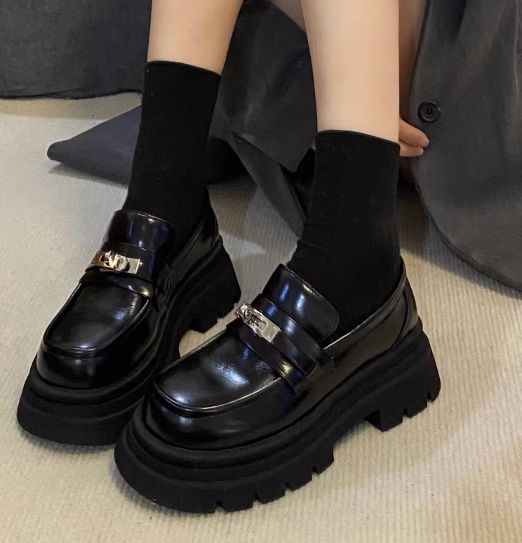 香港英伦风小皮鞋女2024春季真皮厚底百搭锁扣休闲乐福鞋单鞋女