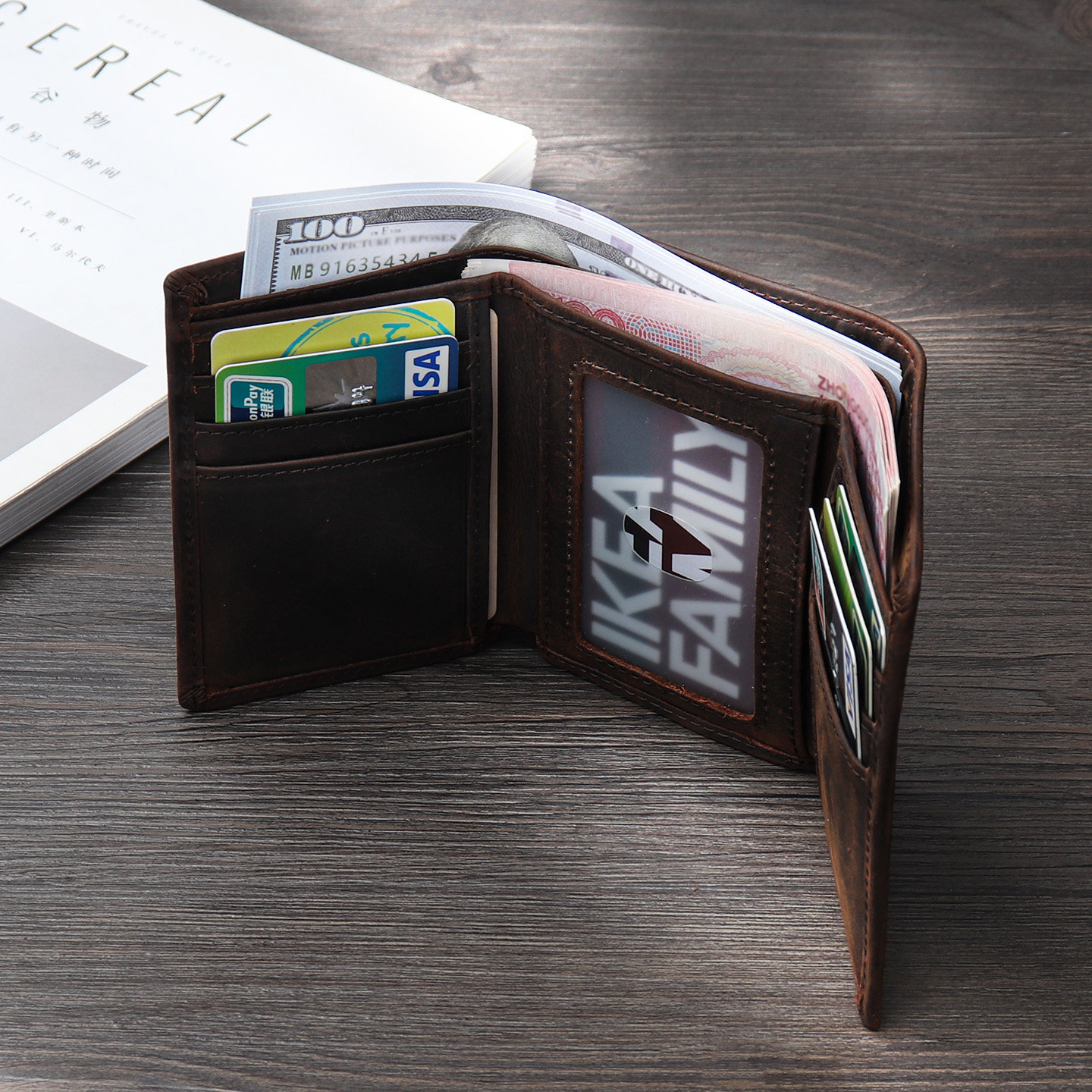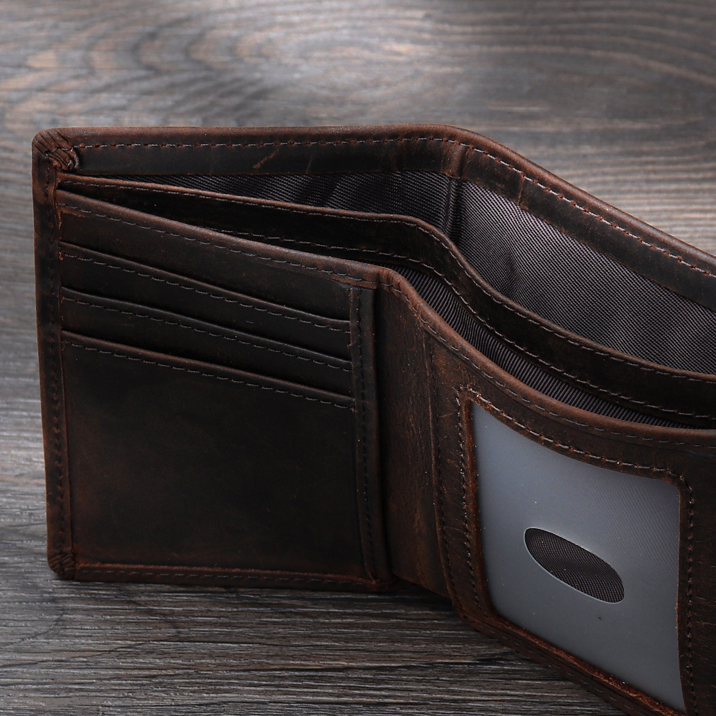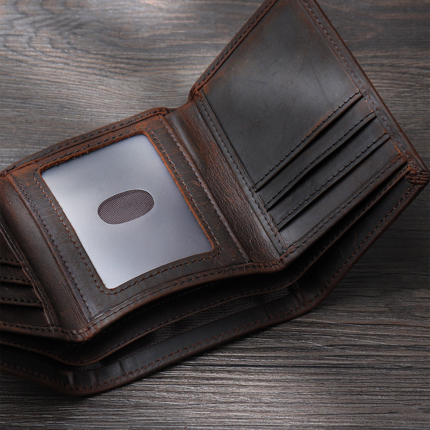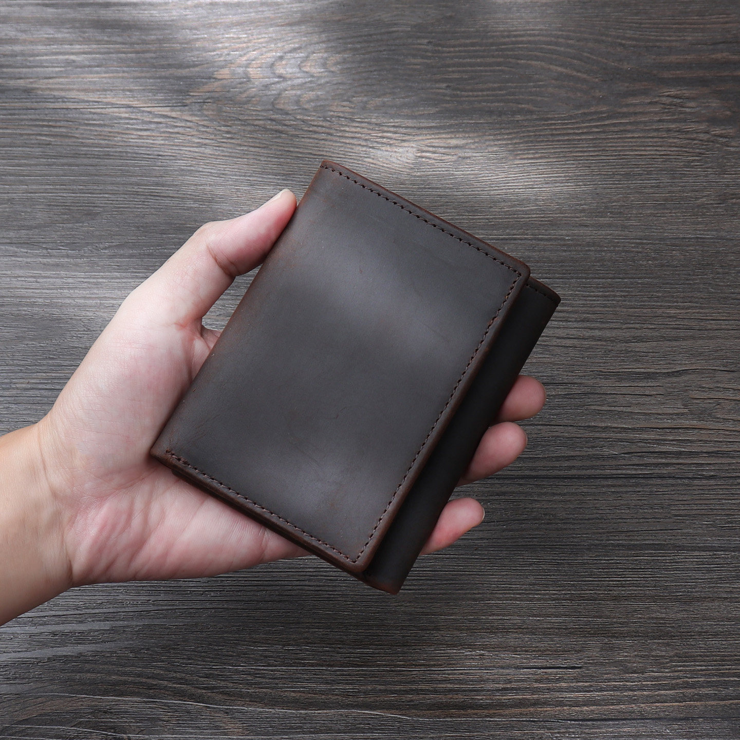 复古疯马皮手工男士短款三折叠钱包头层牛皮多功能真皮女青年钱夹