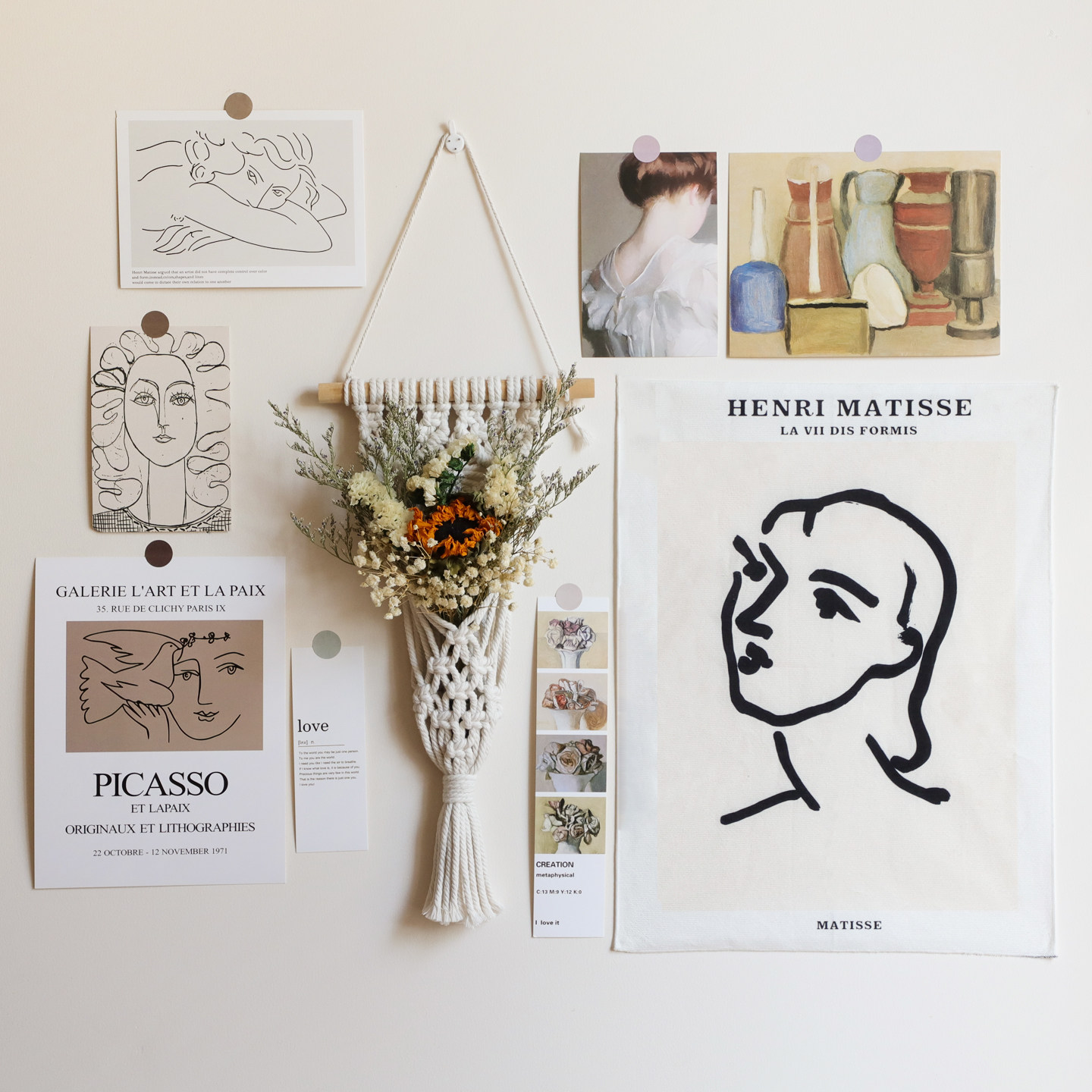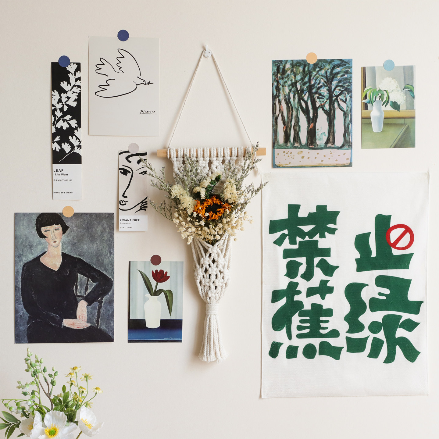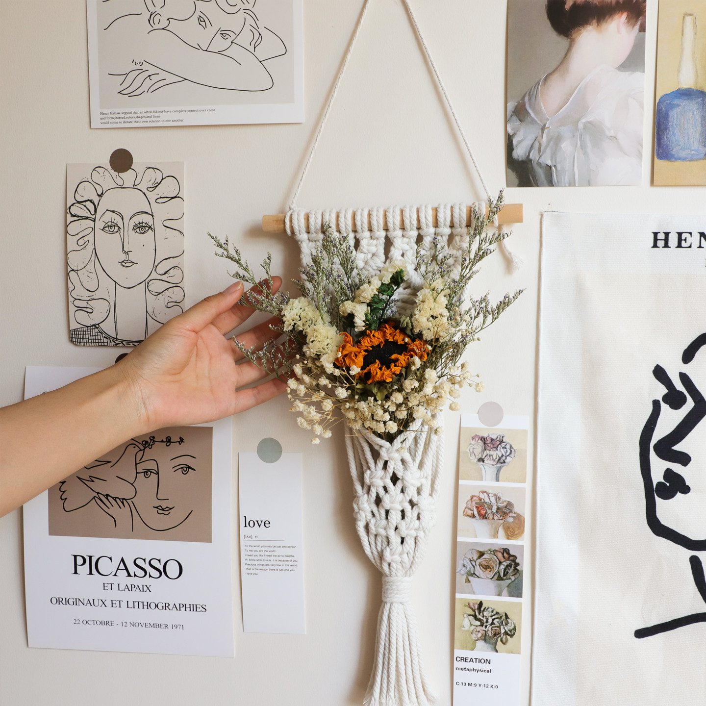 ins挂毯干花卡片墙贴立体墙面装饰毛毡板布置卧室客厅背景墙壁挂