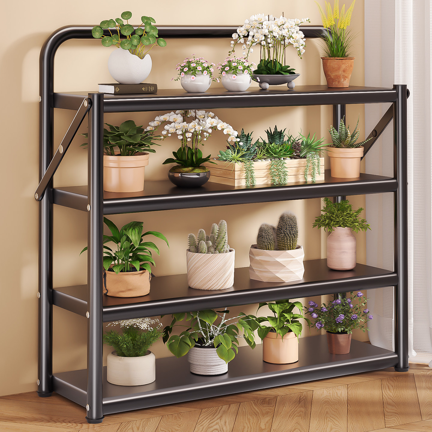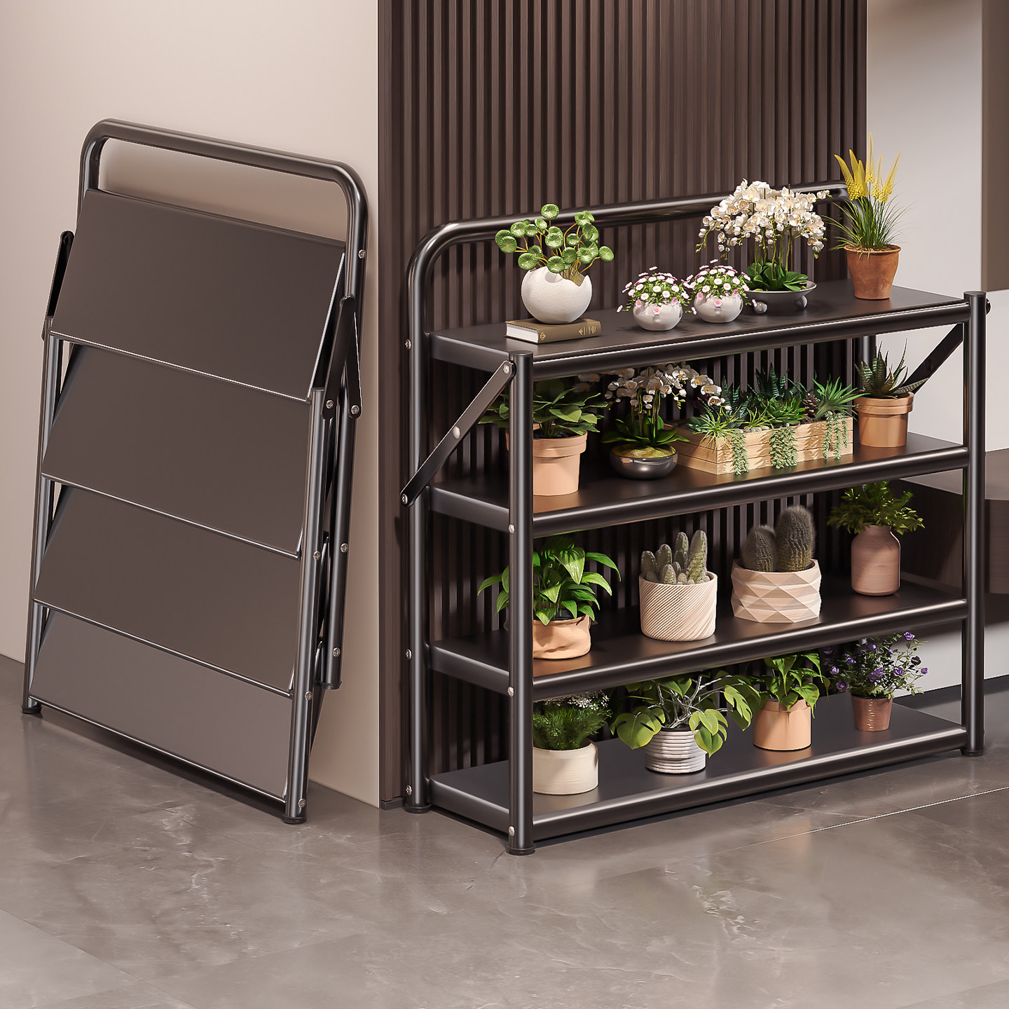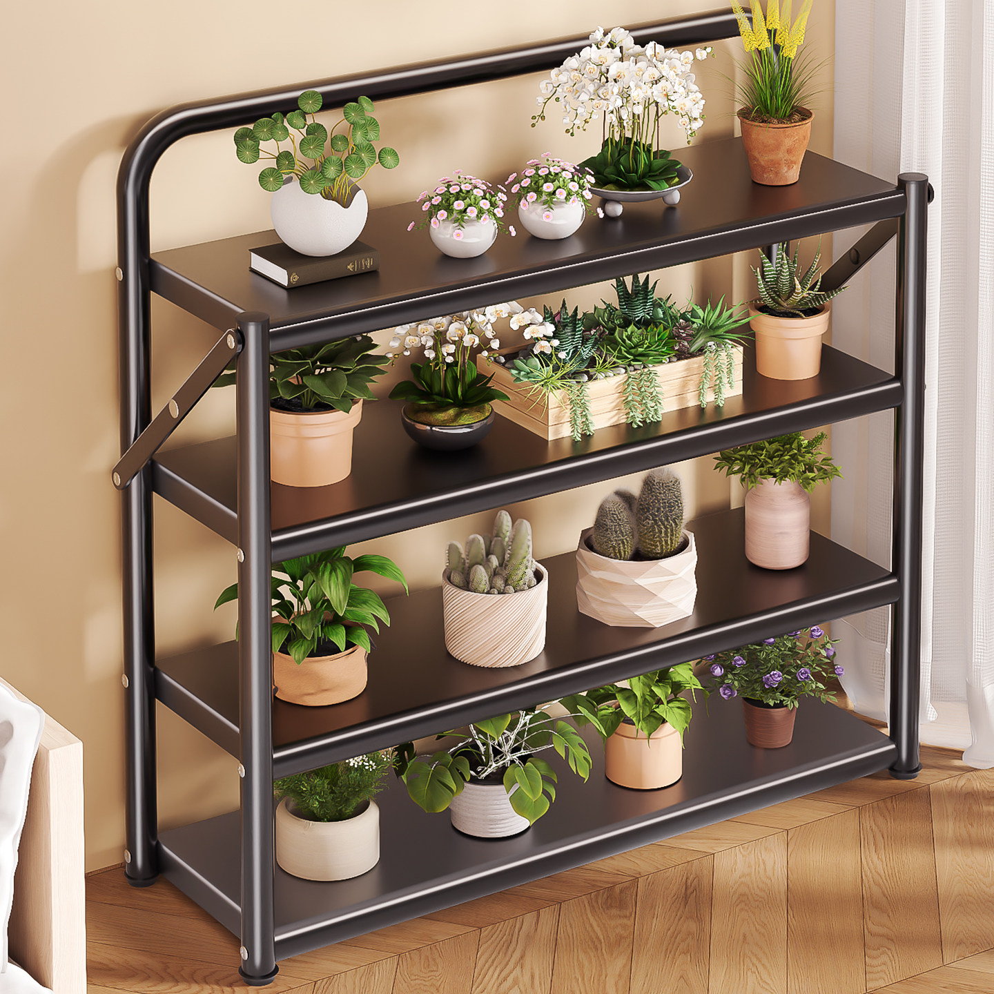 花架置物架阳台花架子客厅落地式可折叠室内多层多肉一体花盆托架