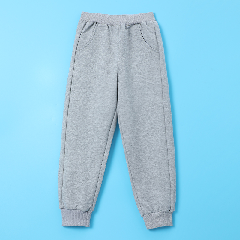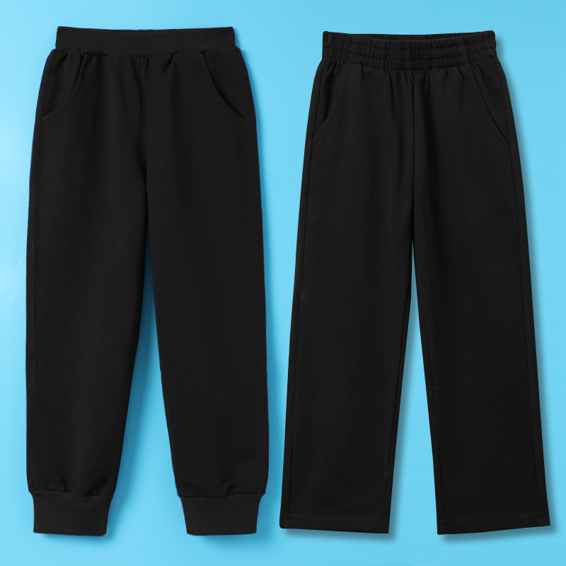 男童深蓝色运动长裤秋冬款纯棉灰色裤子加绒黑色女童小学生校服裤