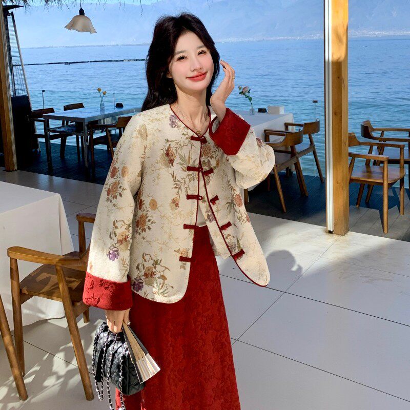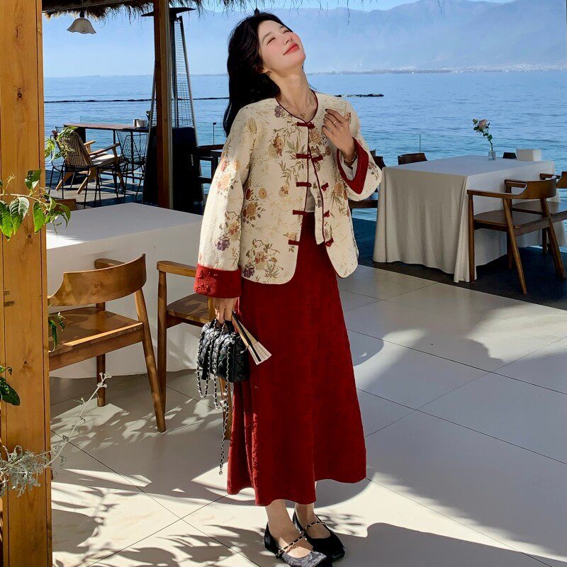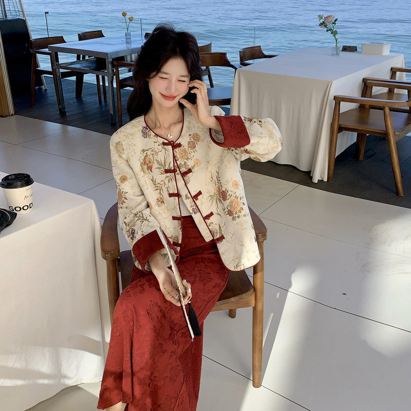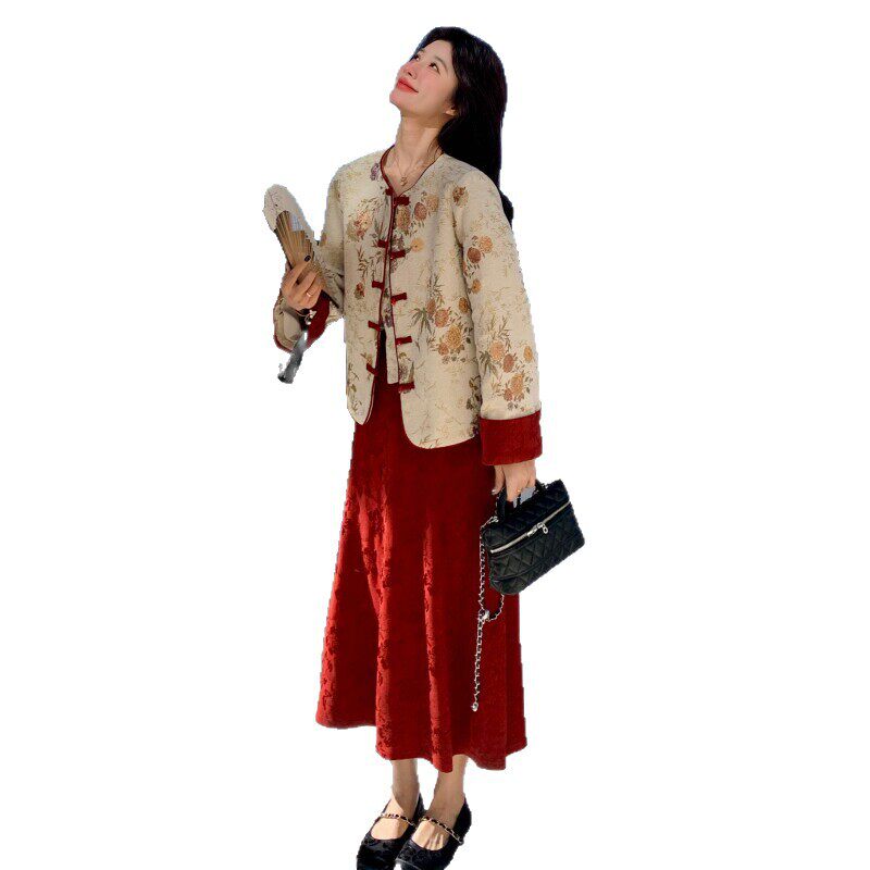 时尚套装2026春季新款女装新中式国风时尚外套半裙两件套裙 C209