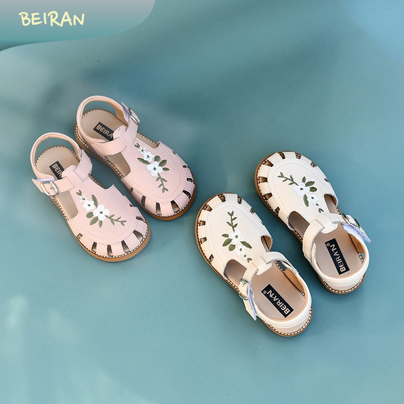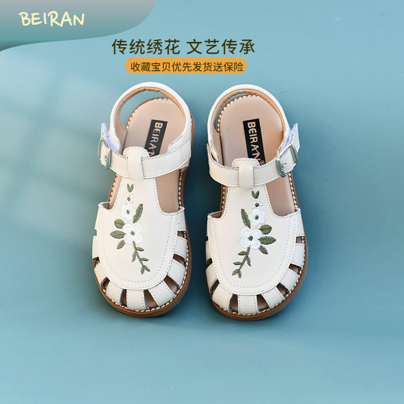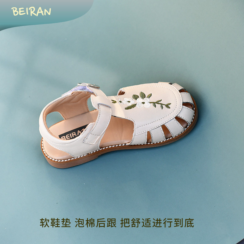 贝然儿童凉鞋女童休闲夏季绣花包头软底宝宝沙滩鞋防护头防滑女孩