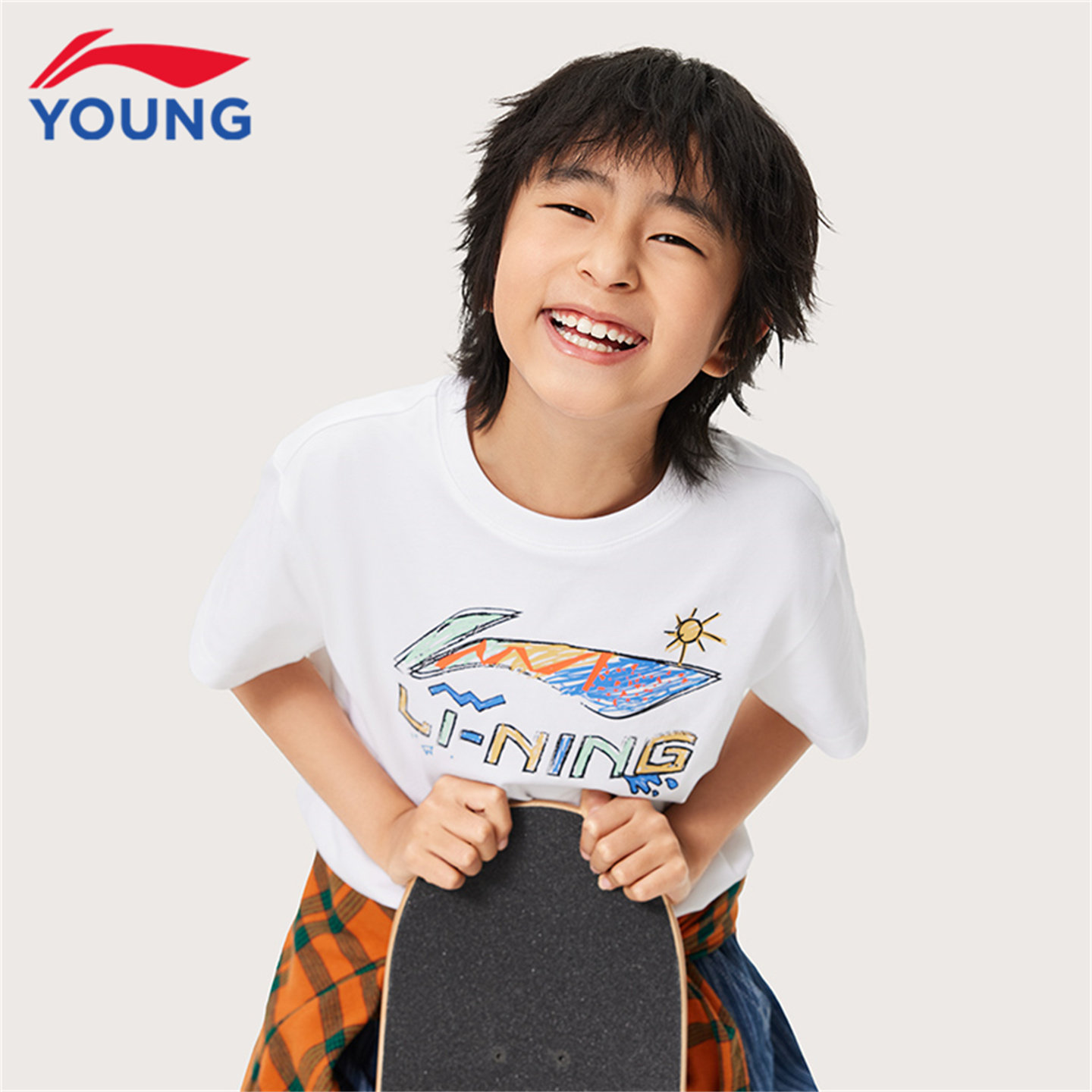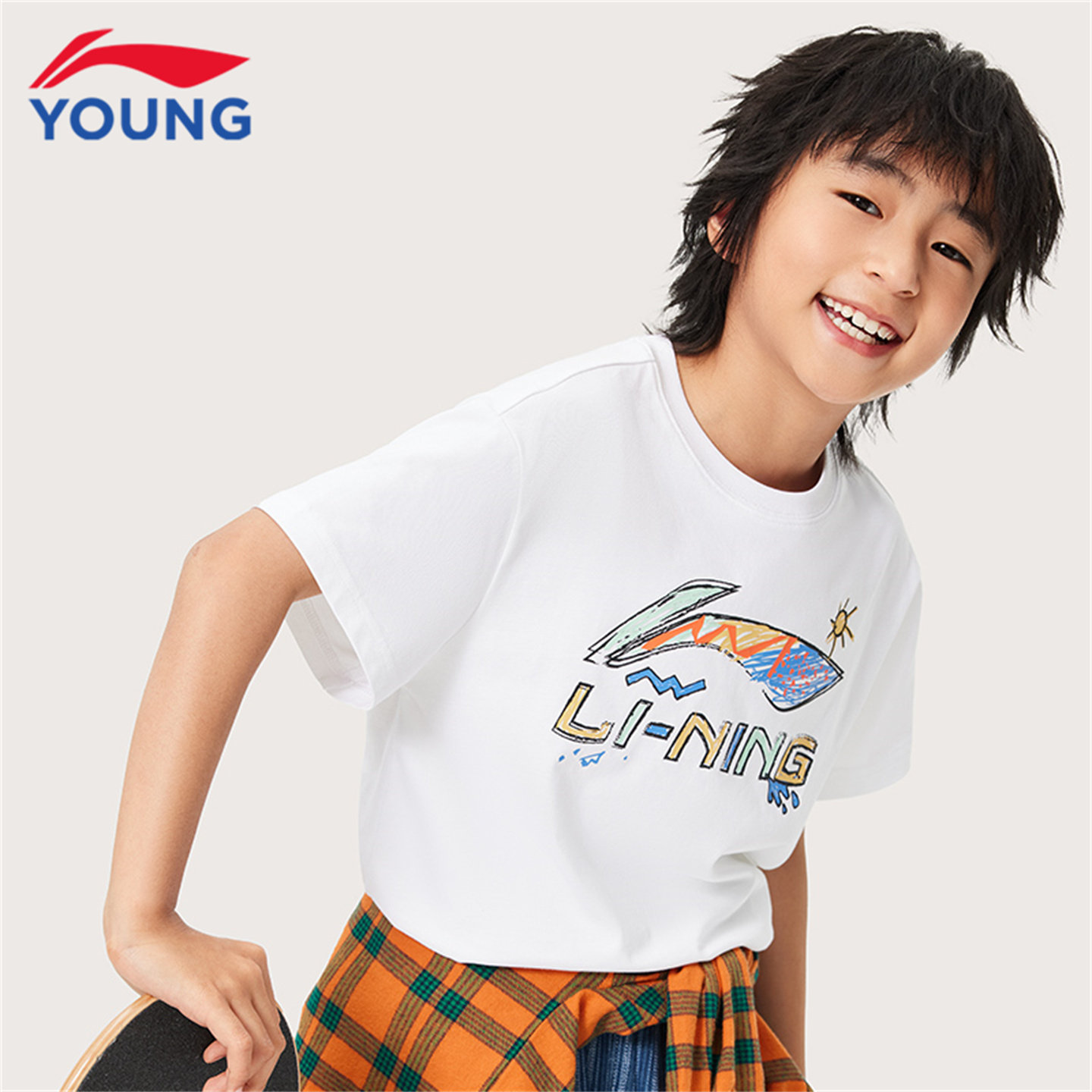 李宁儿童短袖T恤男大童2026夏季新款青少年休闲宽松纯棉印花半袖