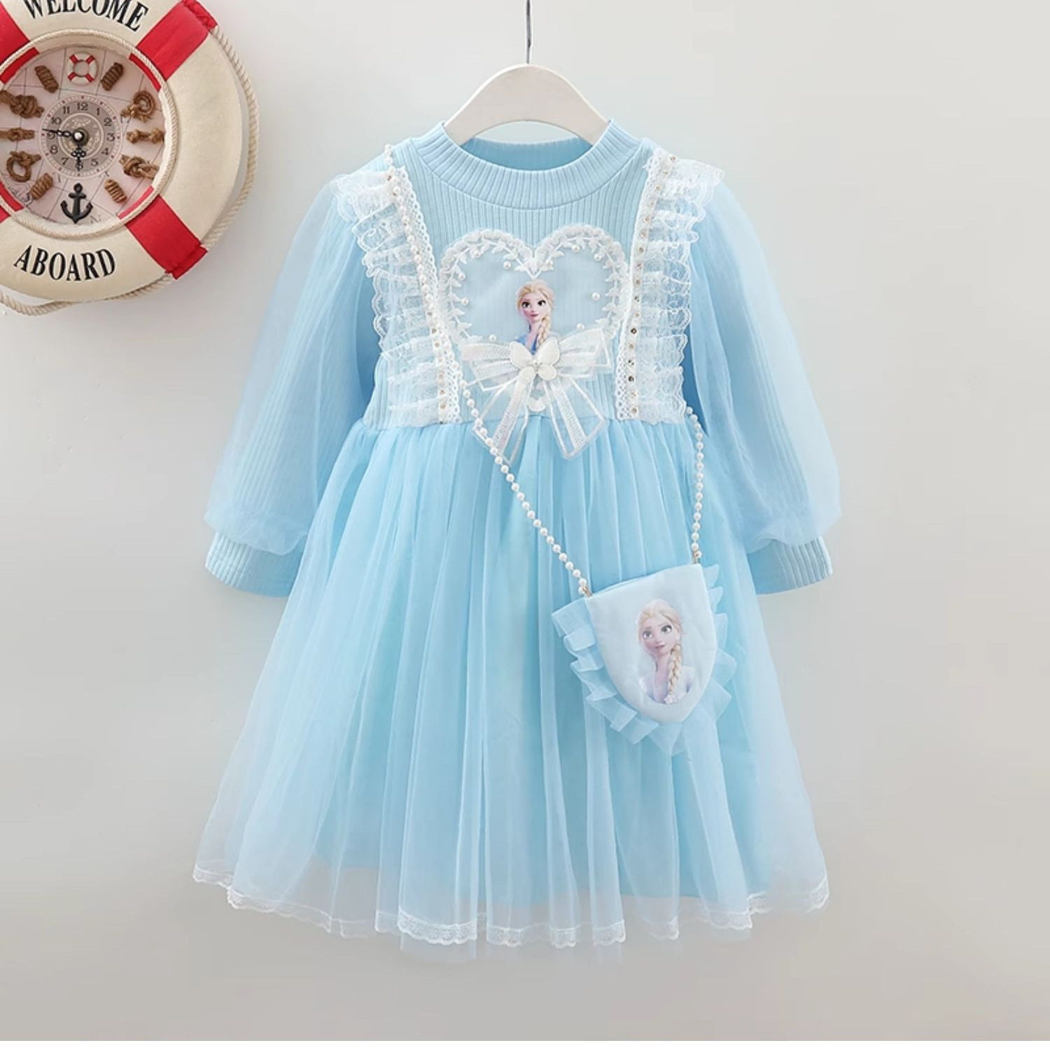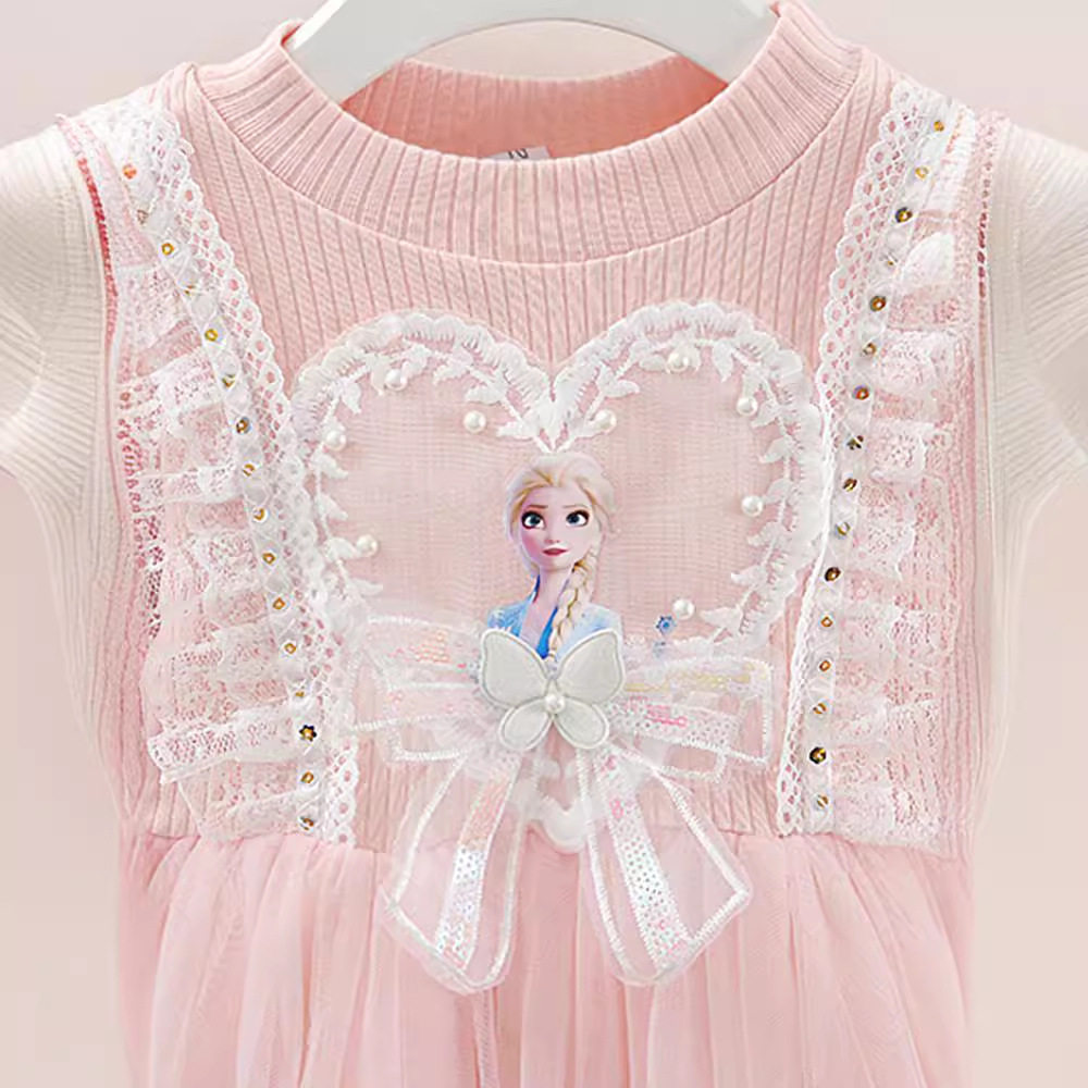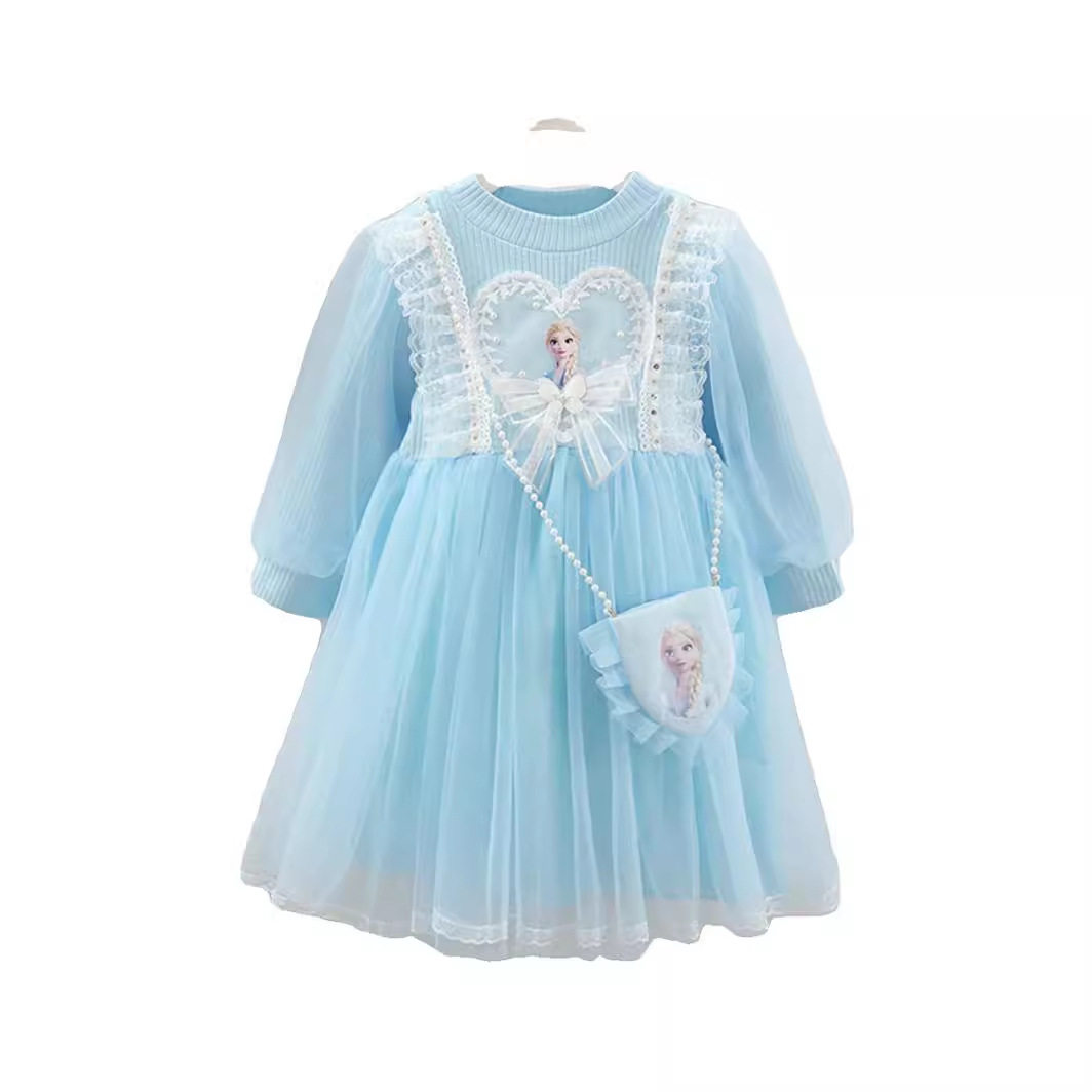 5春装4女童6长袖艾莎网纱连衣裙7儿童装8小女孩3岁蕾丝花边公主裙