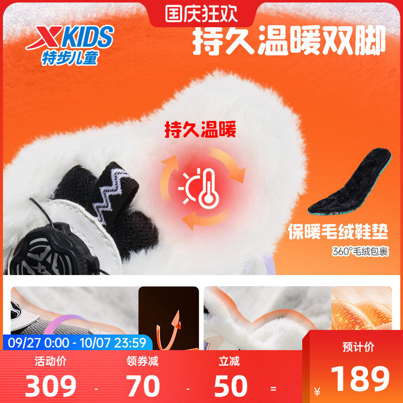 特步儿童女大童大棉鞋冬季保暖女孩加绒加厚运动鞋女童鞋2026童鞋