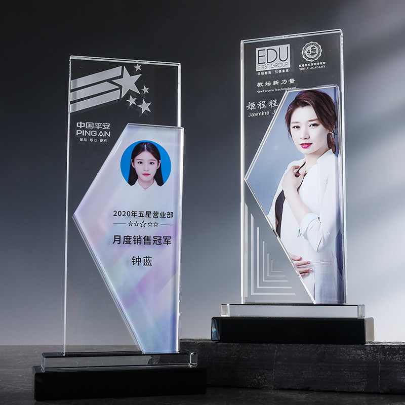 水晶奖杯定制做创意刻字带相片照片奖牌保险优员工销售纪念品