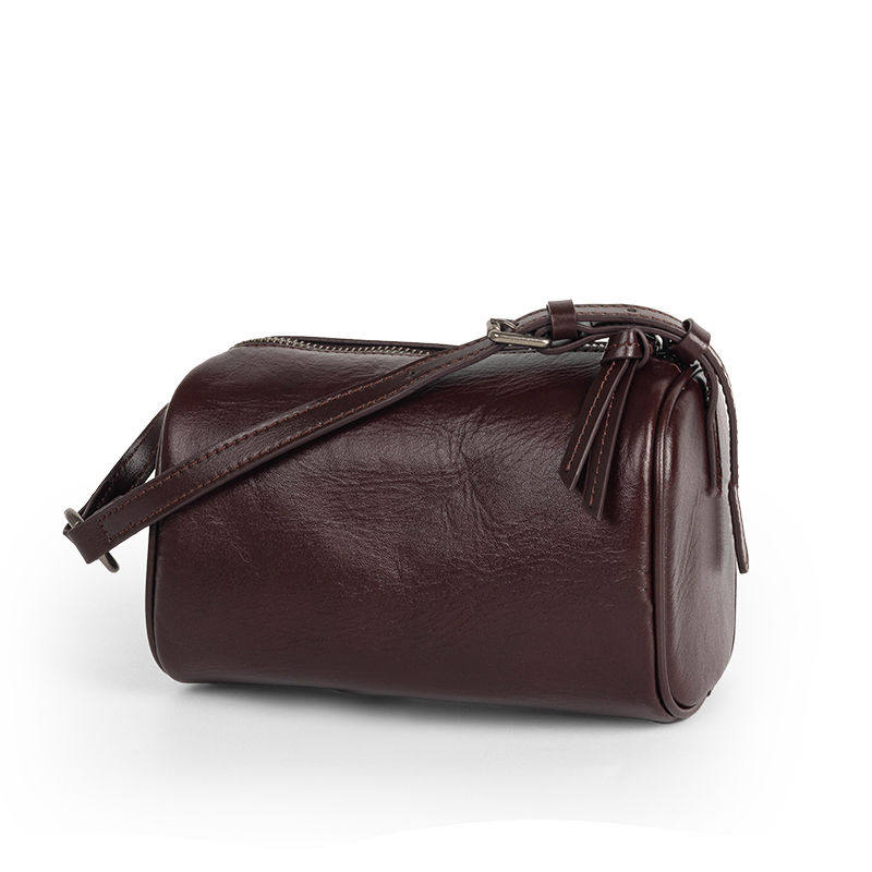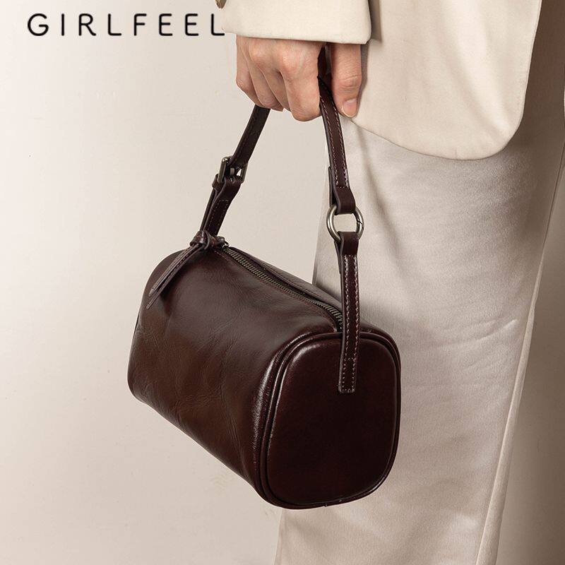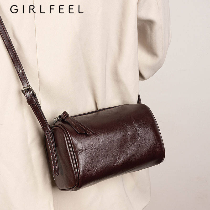 歌菲妮包包女2026新款头层牛皮单肩斜挎包圆筒枕头包植鞣牛皮筒包