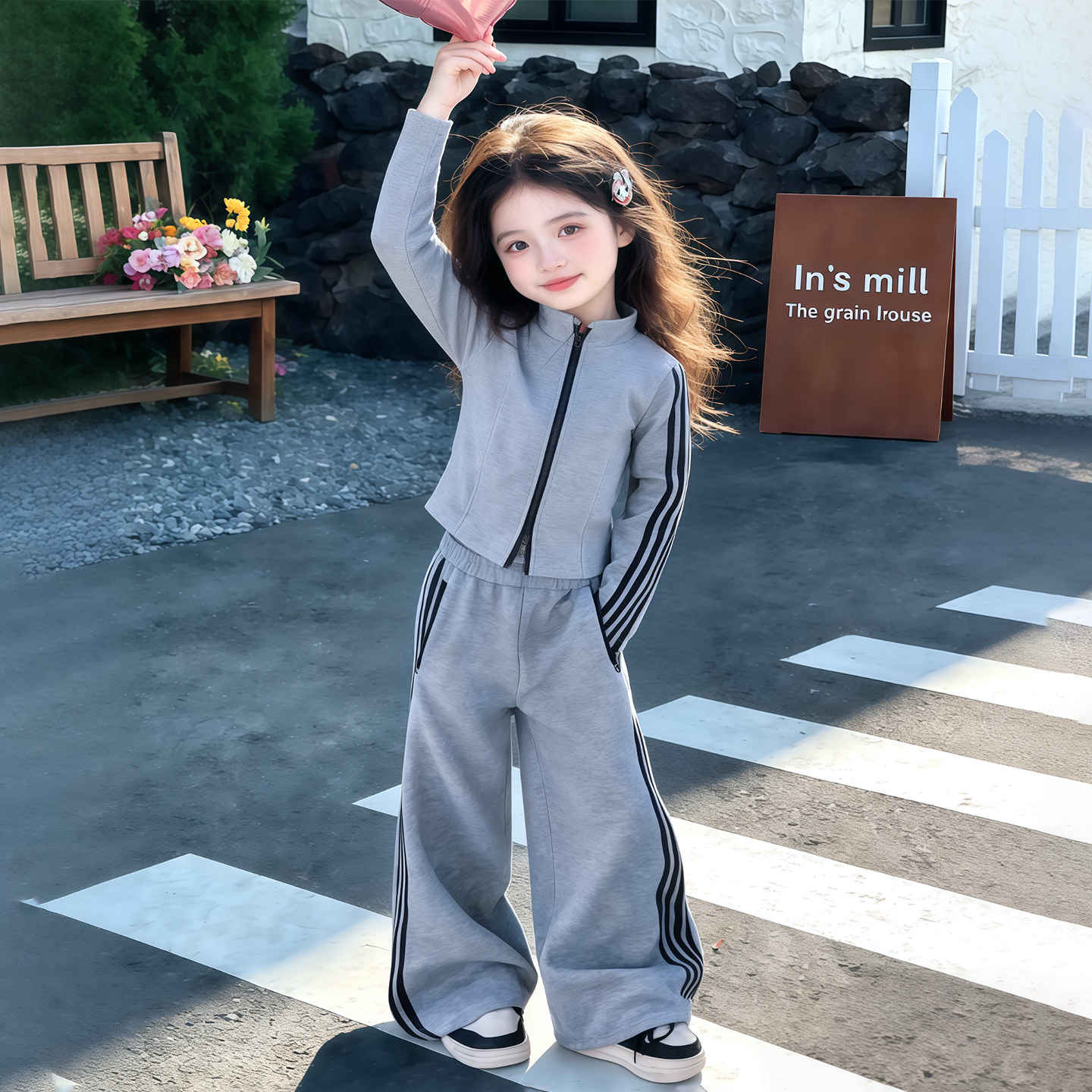 女童套装2026年新款春秋装洋气时髦中大童韩版运动风条纹休闲套装