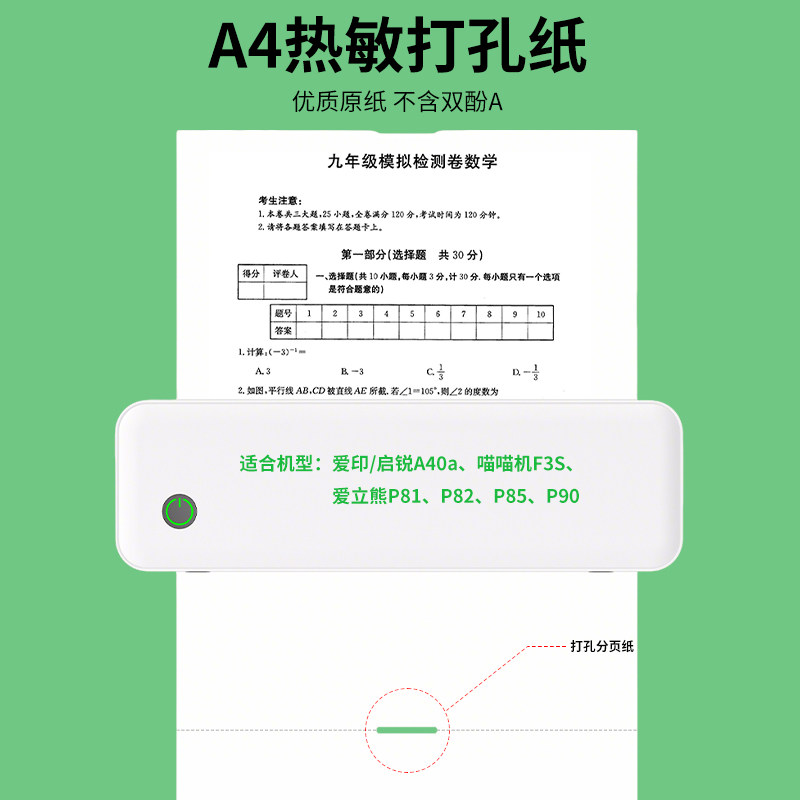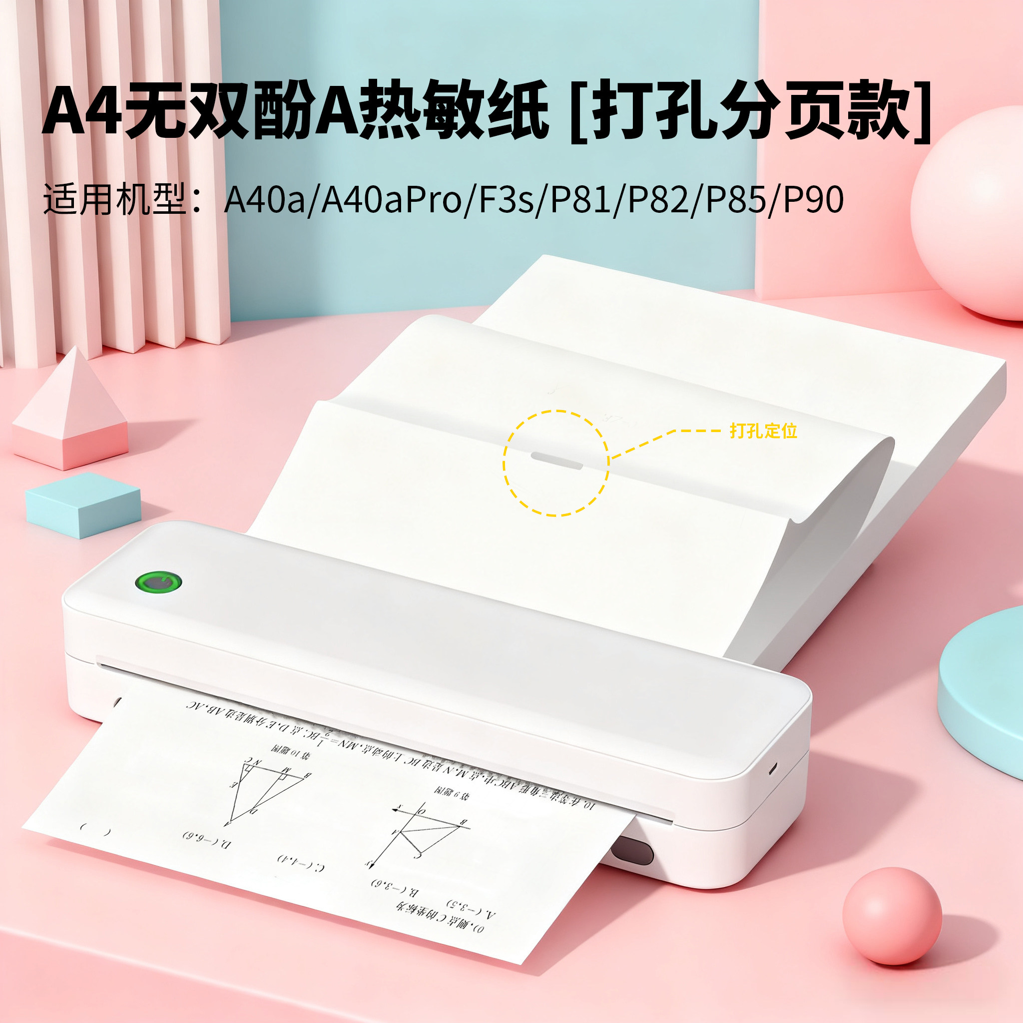凌龙官方打孔分页纸a4热敏纸200张适用启锐A40a爱印喵喵机F3S爱立熊P90 P81 P85打印机专用无双酚A热敏折叠纸