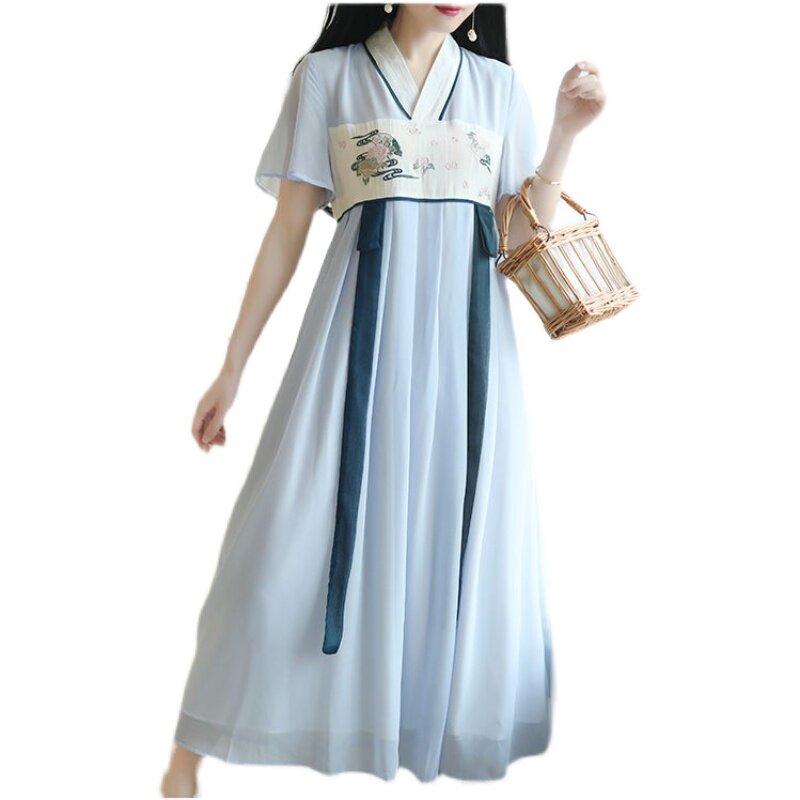 新款改良汉服连衣裙汉元素日常古装女中国风学生古风连衣裙夏特价