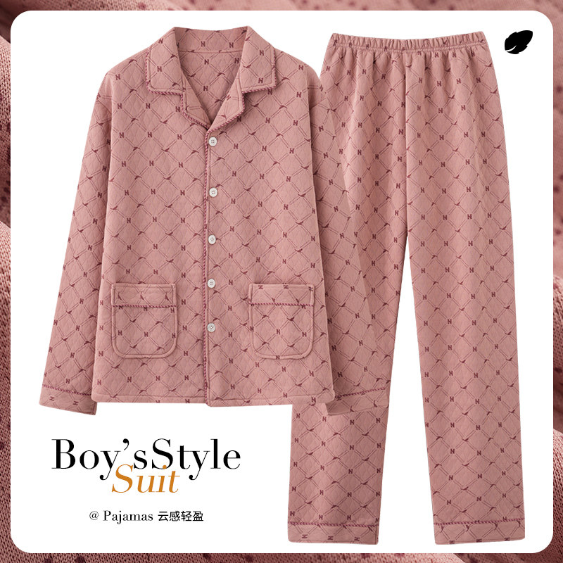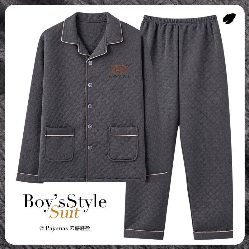睡衣男士秋冬季加厚纯棉长袖中老年爸爸家居服薄款夹棉空气棉夹层