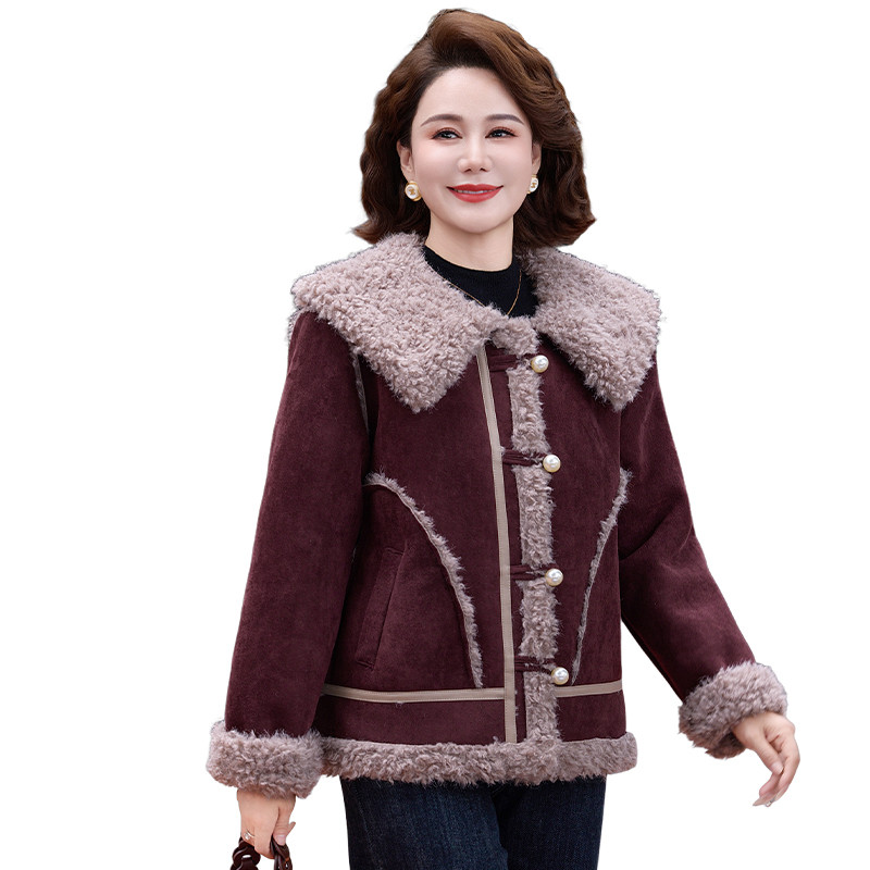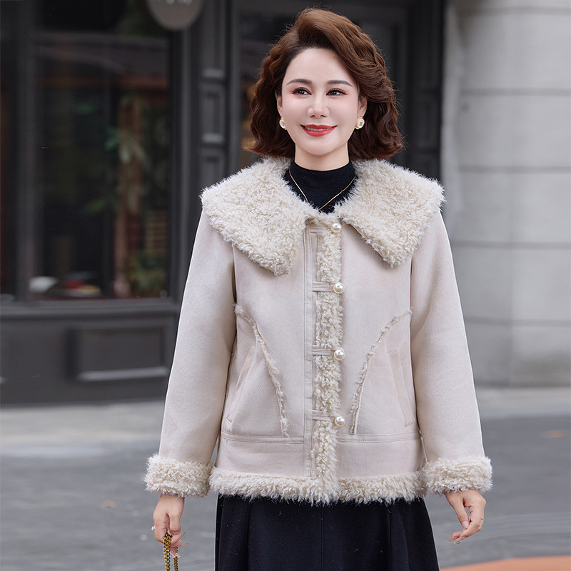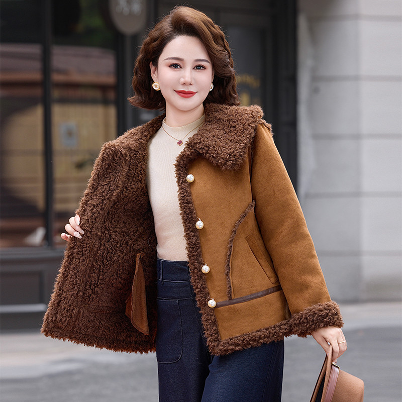中年妈妈冬装新款羊羔绒皮毛一体加厚外套大码中老年女麂皮绒大衣