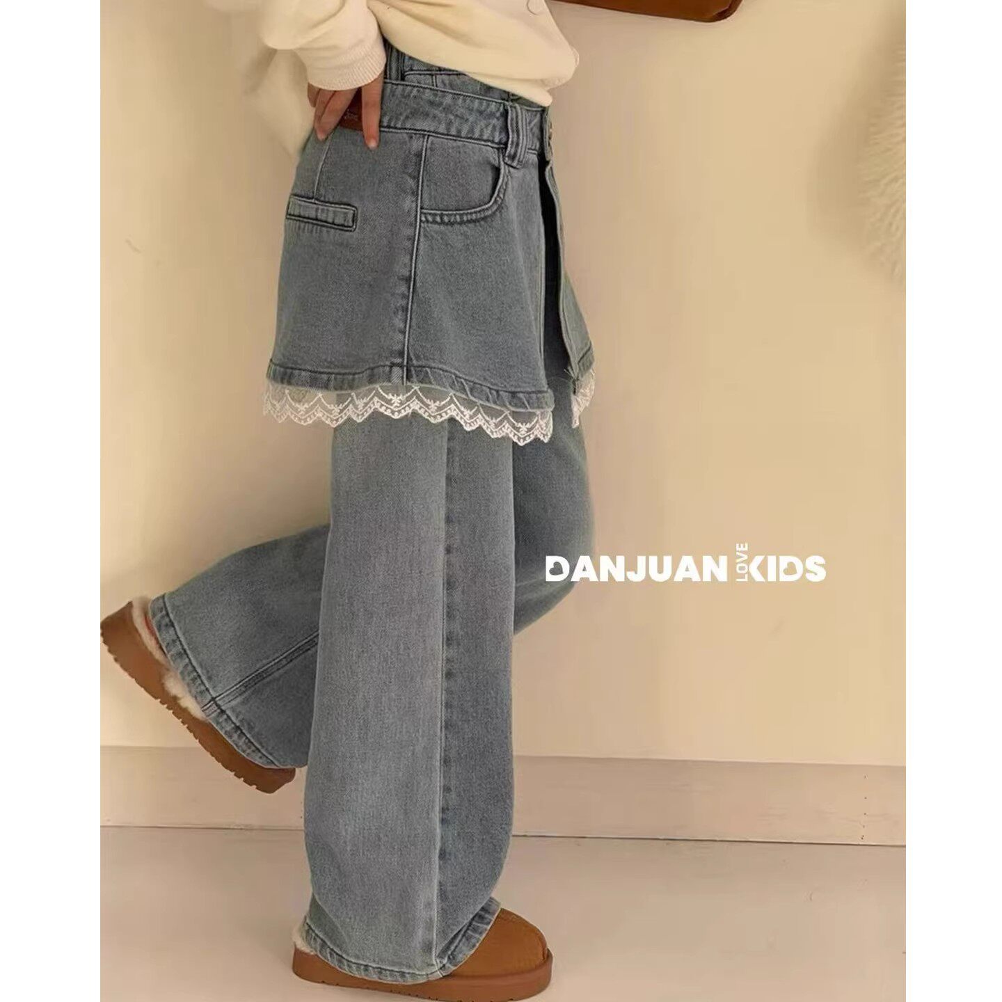 韩国女童屁帘牛仔裤2026春季新款洋气儿童直筒时髦女大童微喇裤子