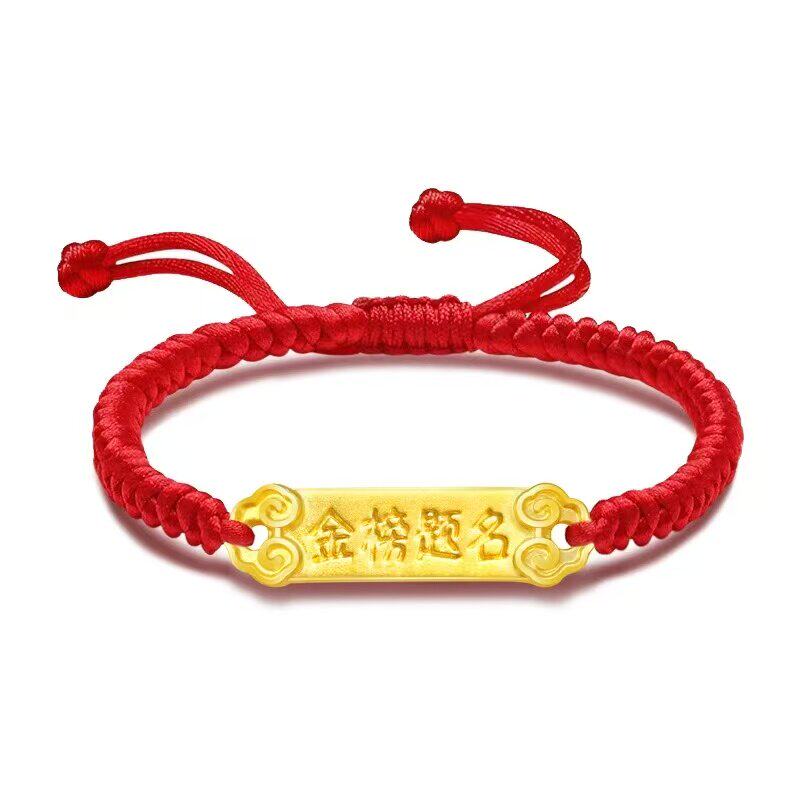 999黄金手链红绳金榜题名中考手绳逢考必过3D硬金足金手串金饰品