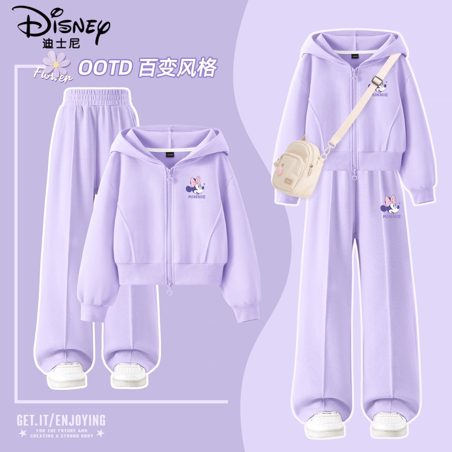迪士尼女童运动套装时尚女孩春季薄款外套2026新款儿童春装衣服潮