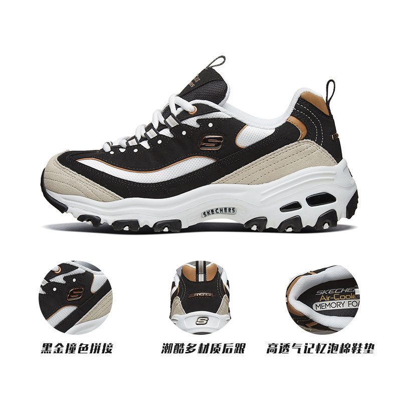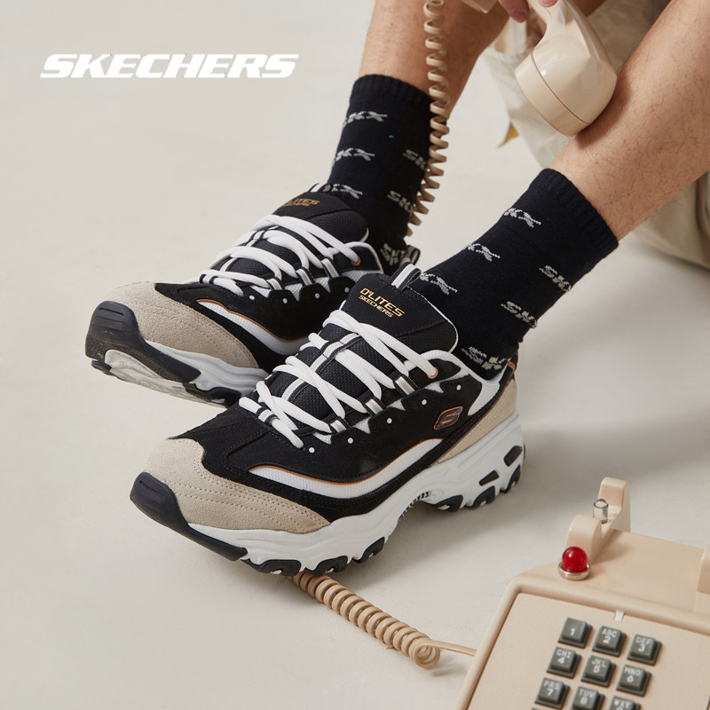斯凯奇官方正品男鞋熊猫鞋2026夏季新款透气运动鞋厚底显高老爹鞋