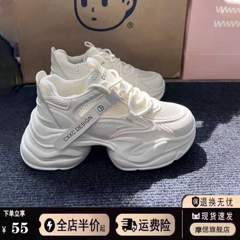 极速厚底内增高老爹鞋o女款2026新款夏季单网面透气休闲运动女鞋