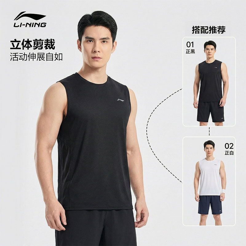 李宁健身衣服男款健身房训练服弹力背心T恤运动上衣宽松夏季篮球