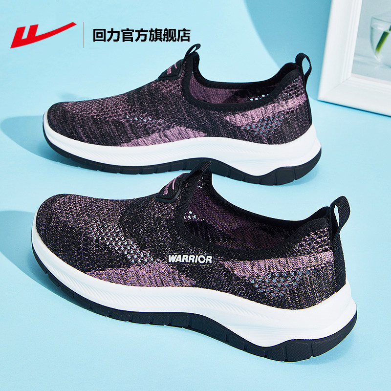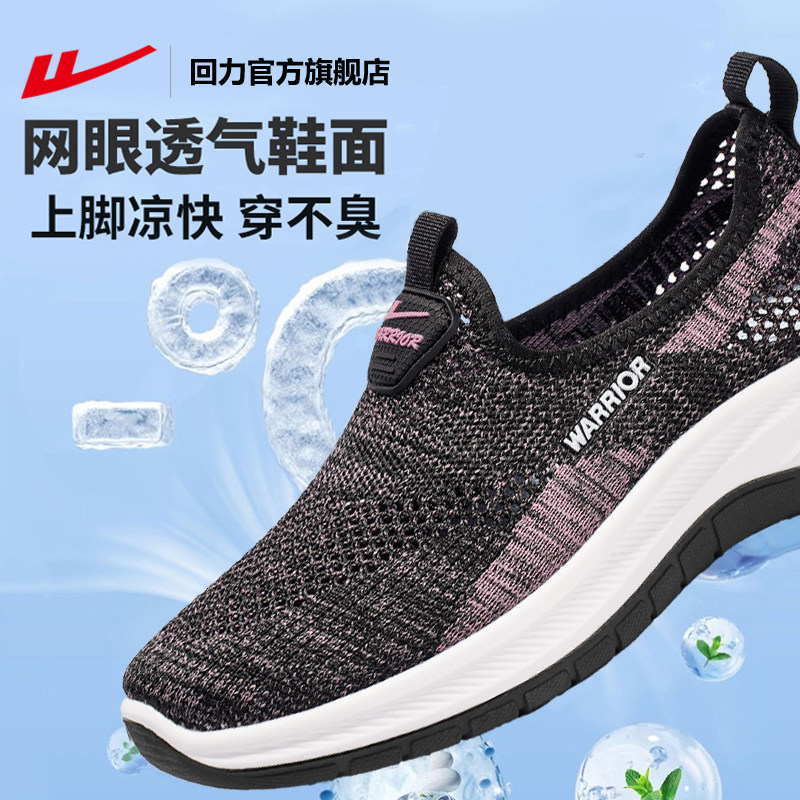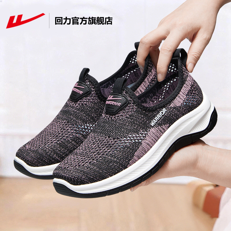 回力官方旗舰店妈妈鞋夏季新款一脚蹬女鞋透气镂空网面舒适老人鞋