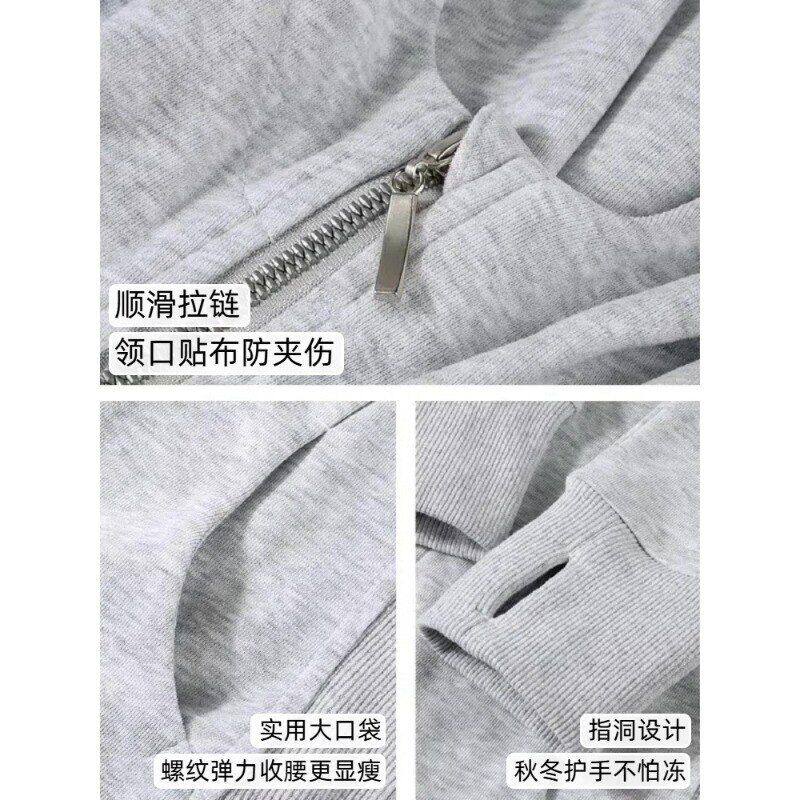早春修身外套女款春季2026灰色卫衣连帽正肩收腰瑜伽服上衣女开春