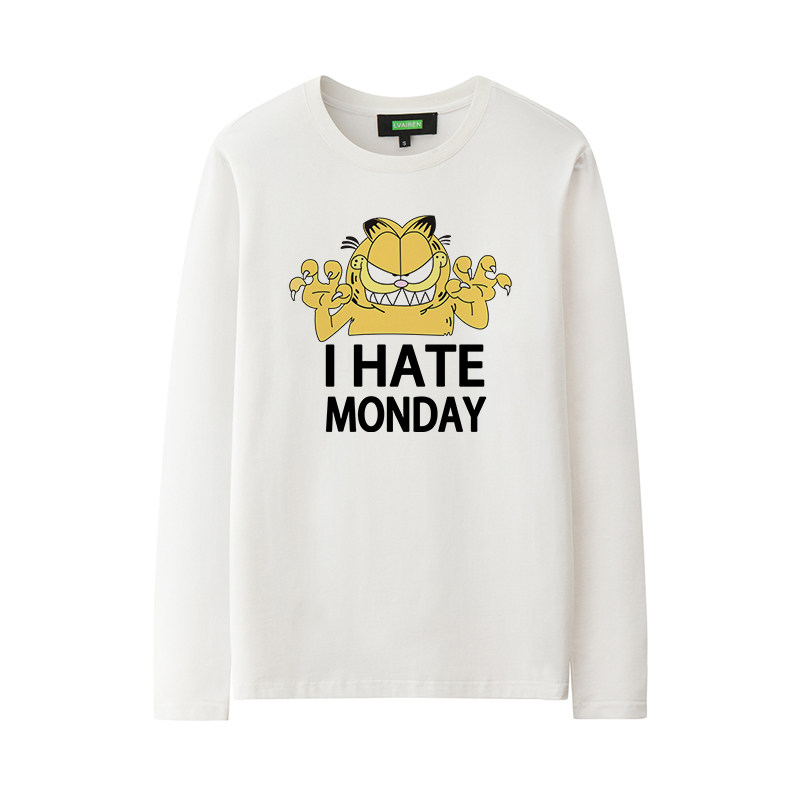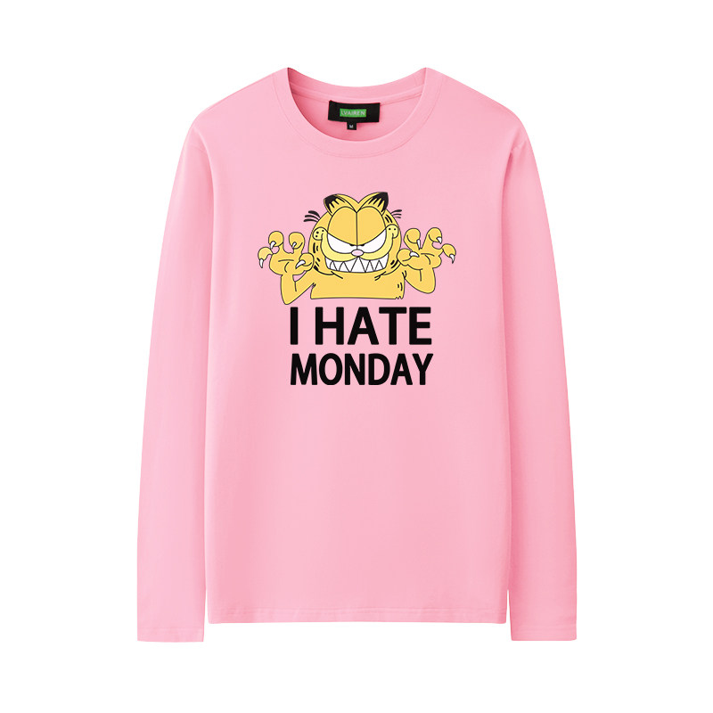 ins原宿加菲猫双面印花长袖秋季薄款男女童装亲子装青少年纯棉T恤