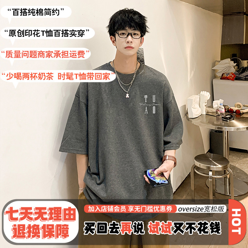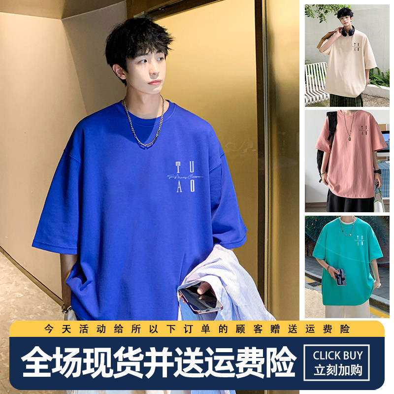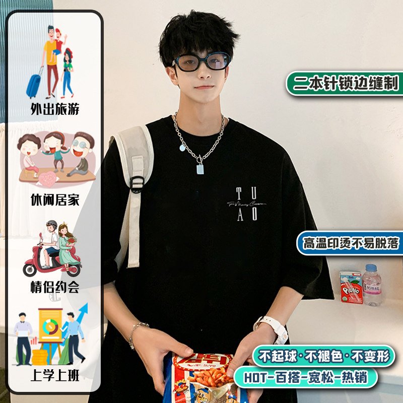 欧美潮牌t恤男夏季休闲简约字母印花正肩短袖青少年纯棉宽松半袖