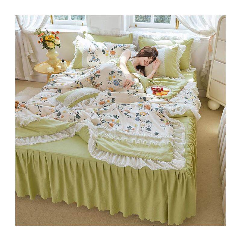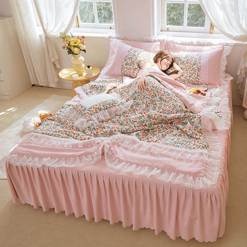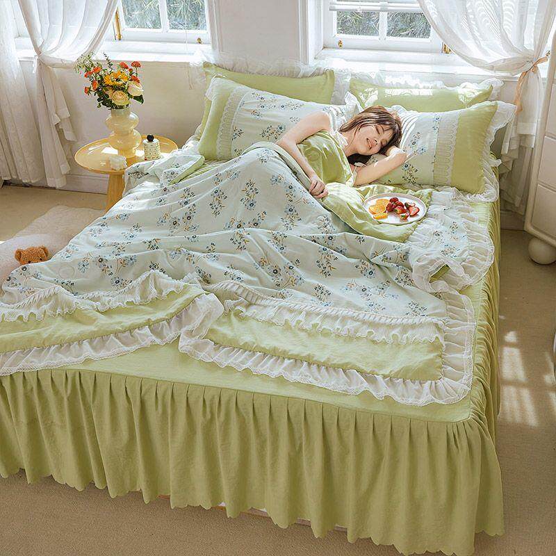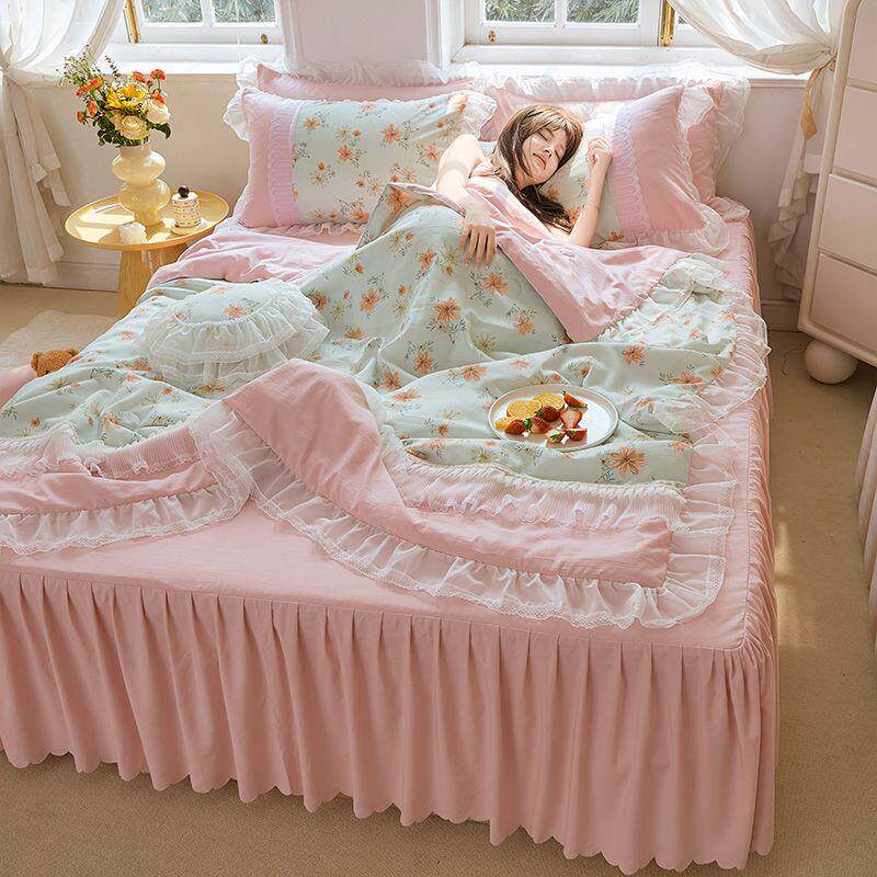 水洗棉夏被空调被四件套公主风蕾丝花边薄款夏凉被宿舍床上用品