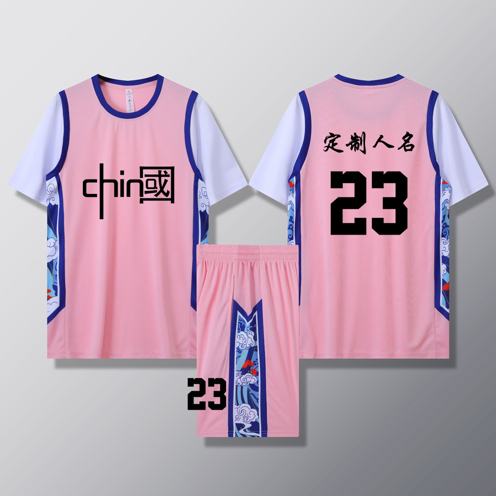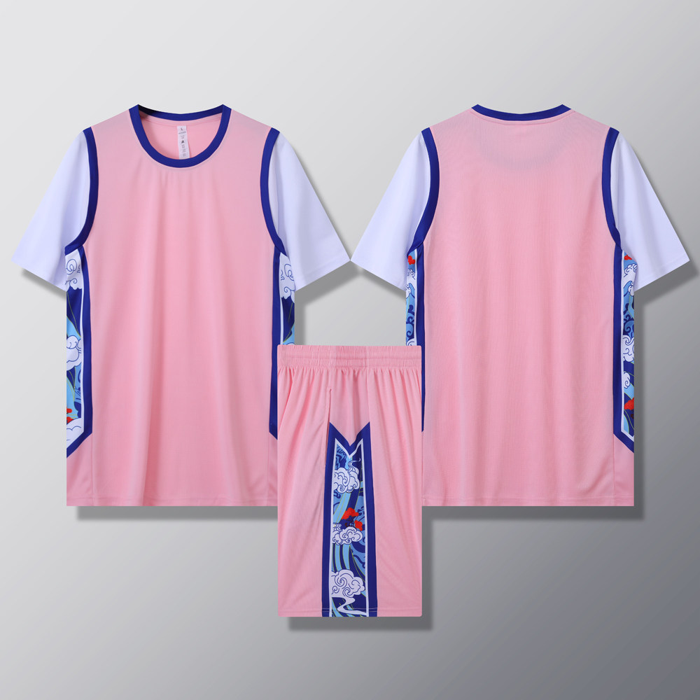 女款女生女童学生假两件短袖篮球服运动健身套装定制印刷B003粉色