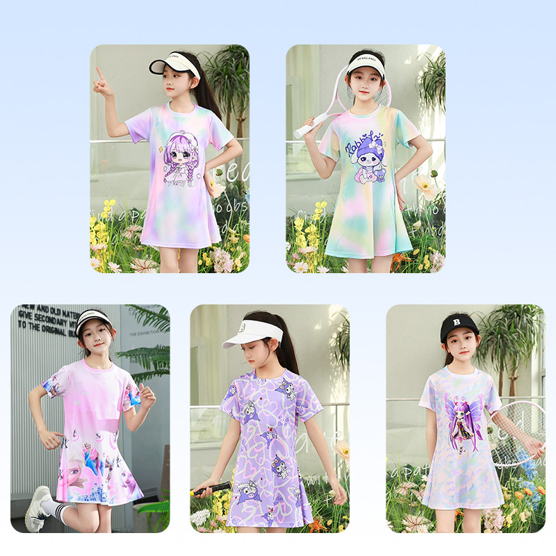 女童篮球表演出服篮球服网球运动服装粉色儿童啦啦队服连衣裙套装