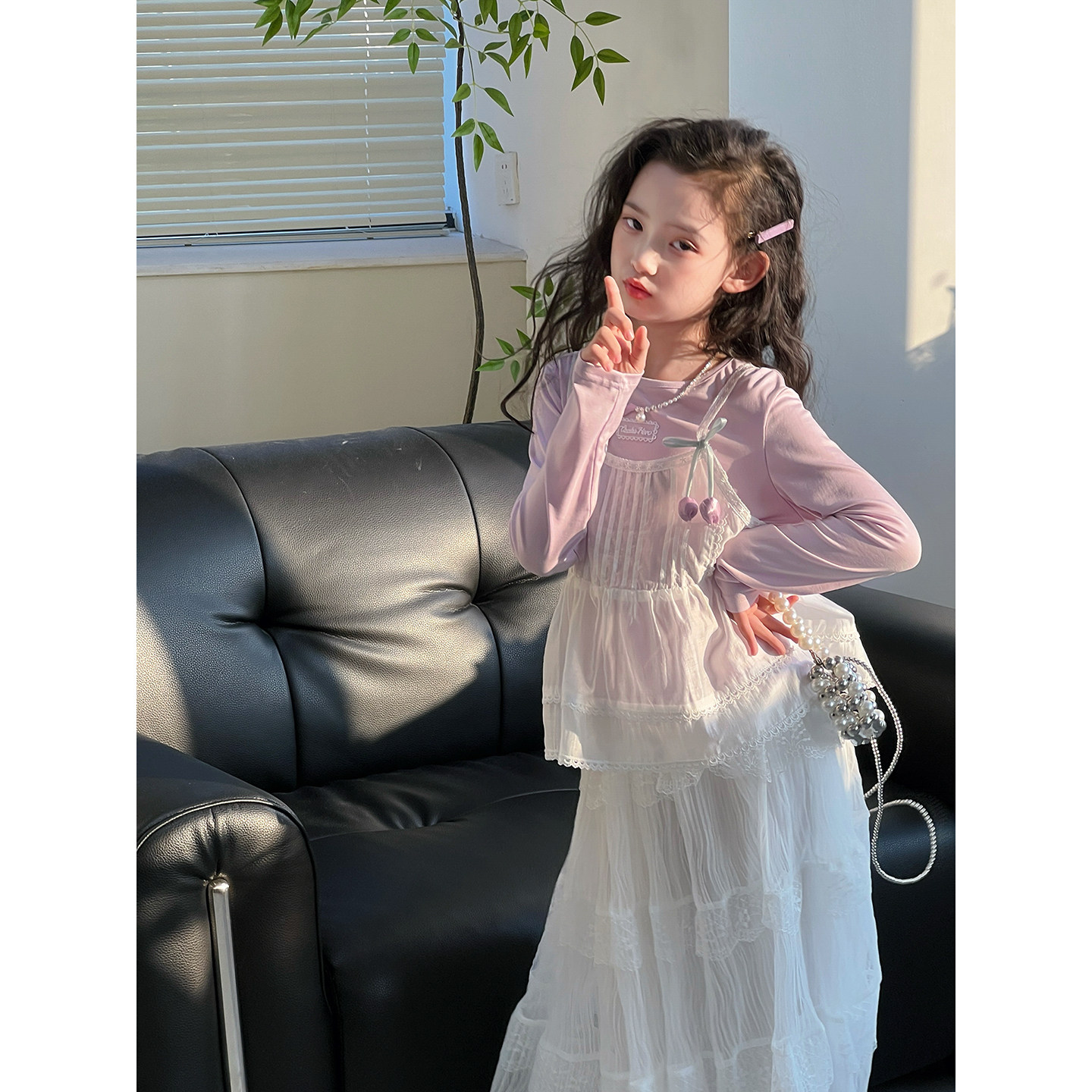 女童套装2026春季新款儿童春装外穿吊带打底衫洋气背心T恤两件套
