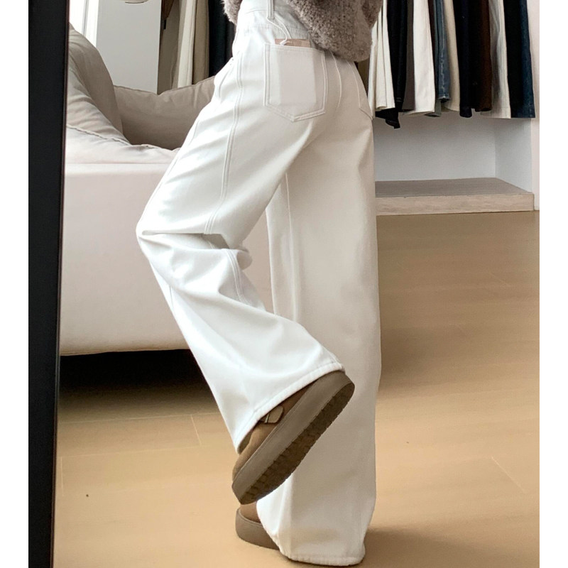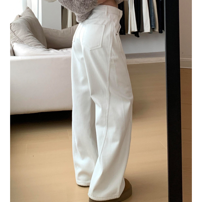 白色弯刀阔腿牛仔裤女2026春季新款高腰宽松显瘦垂坠感直筒镰刀裤