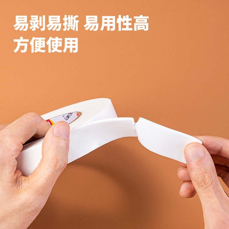 得力30416双面胶带泡棉胶墙面固定两面胶强力海绵双面胶高粘度加厚学生手工用办公用品单卷泡沫胶带办公批发