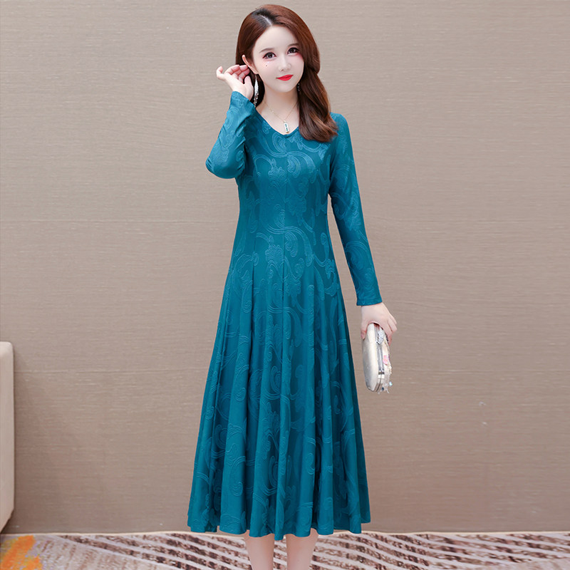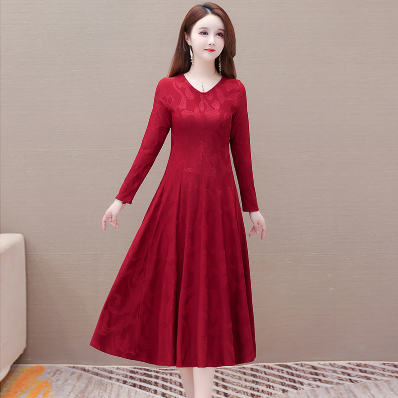 长袖连衣裙女2025新款喜妈妈红色春秋装大码修身贵夫人气质打底裙