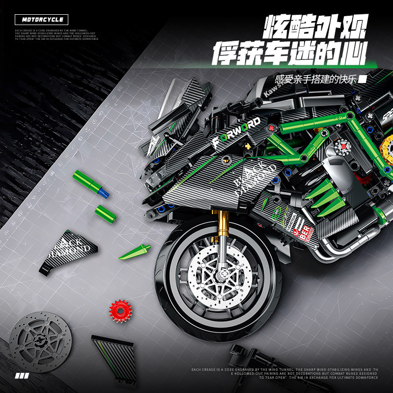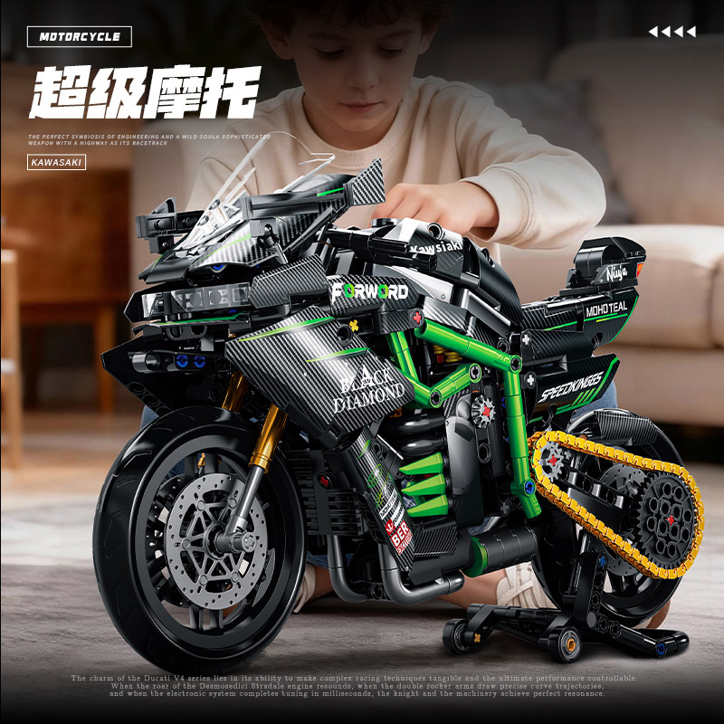 适用乐高川崎忍者H2R摩托车积木机械组拼装仿真机车模型男孩玩具