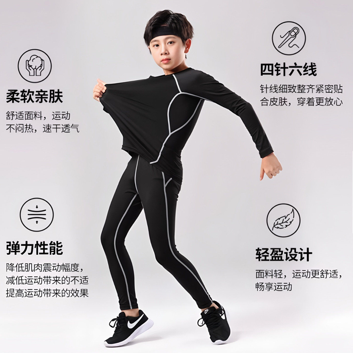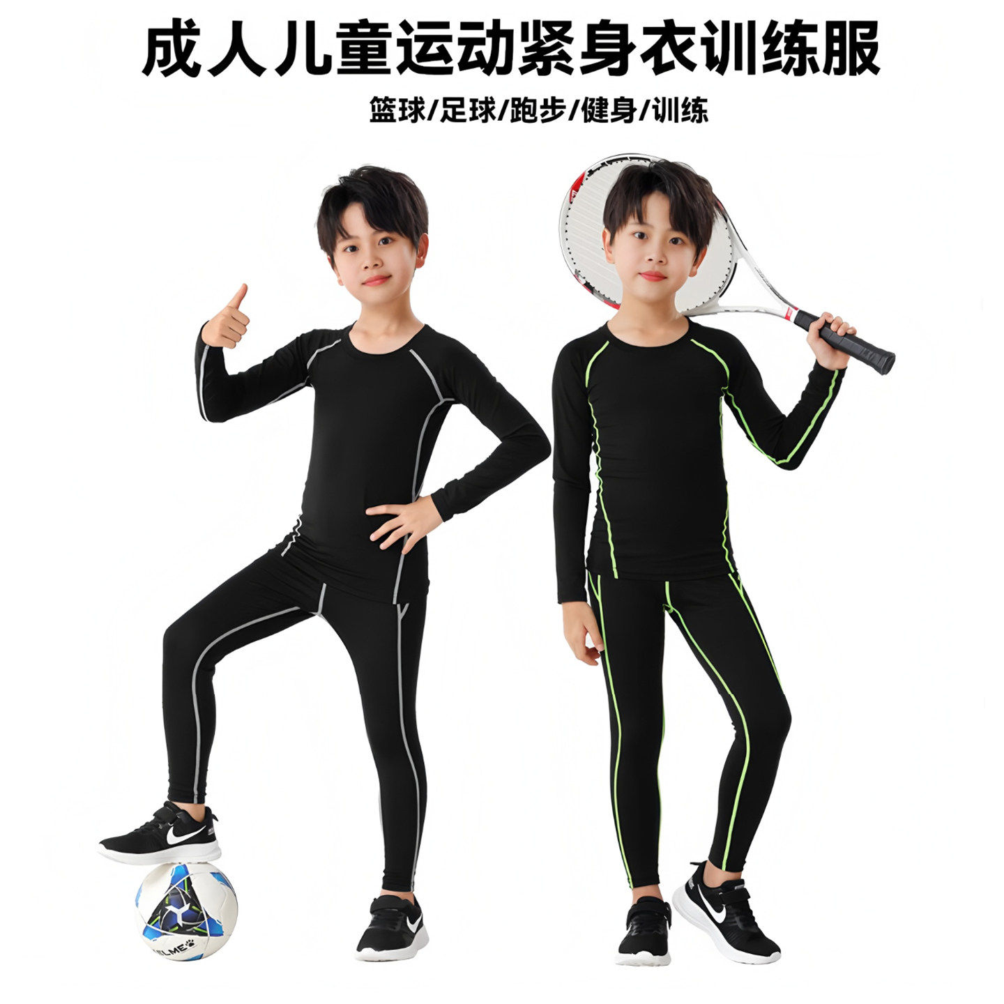 篮球服儿童紧身衣训练服男童秋季足球内搭速干衣打底运动套装秋冬