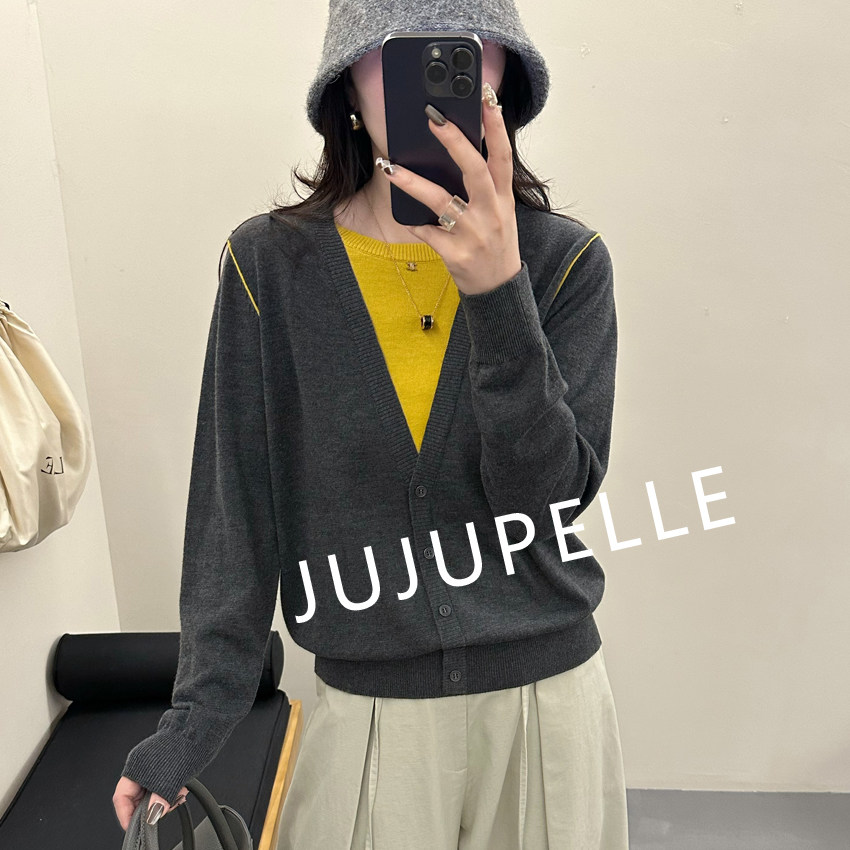 韩版撞色假两件2026早春新款圆领针织衫毛衣宽松显瘦上衣女款套头