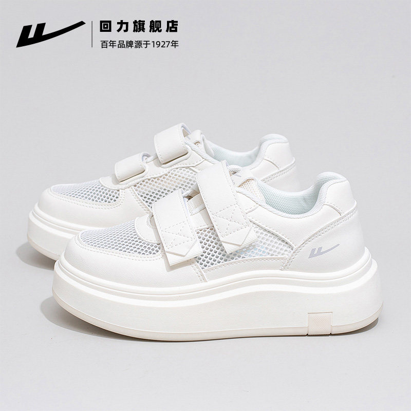 回力厚底小白鞋女款2026新款夏季网面透气女鞋小个子休闲松糕板鞋