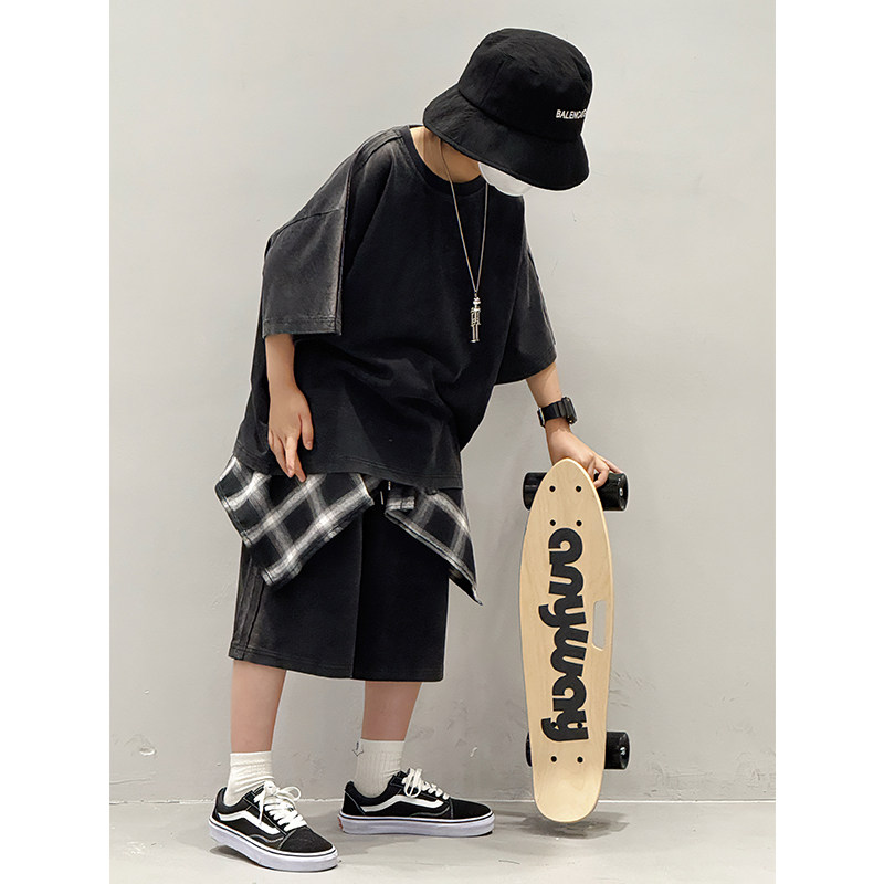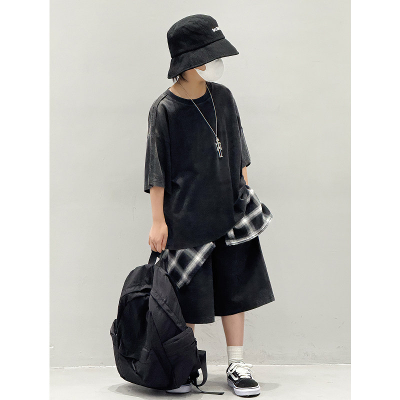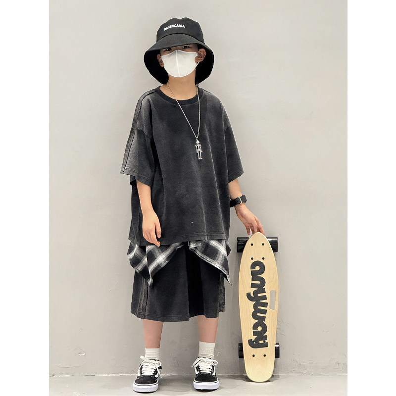 儿童夏季套装2026新款薄款纯棉T恤痞帅气炸街休闲男童短袖两件套