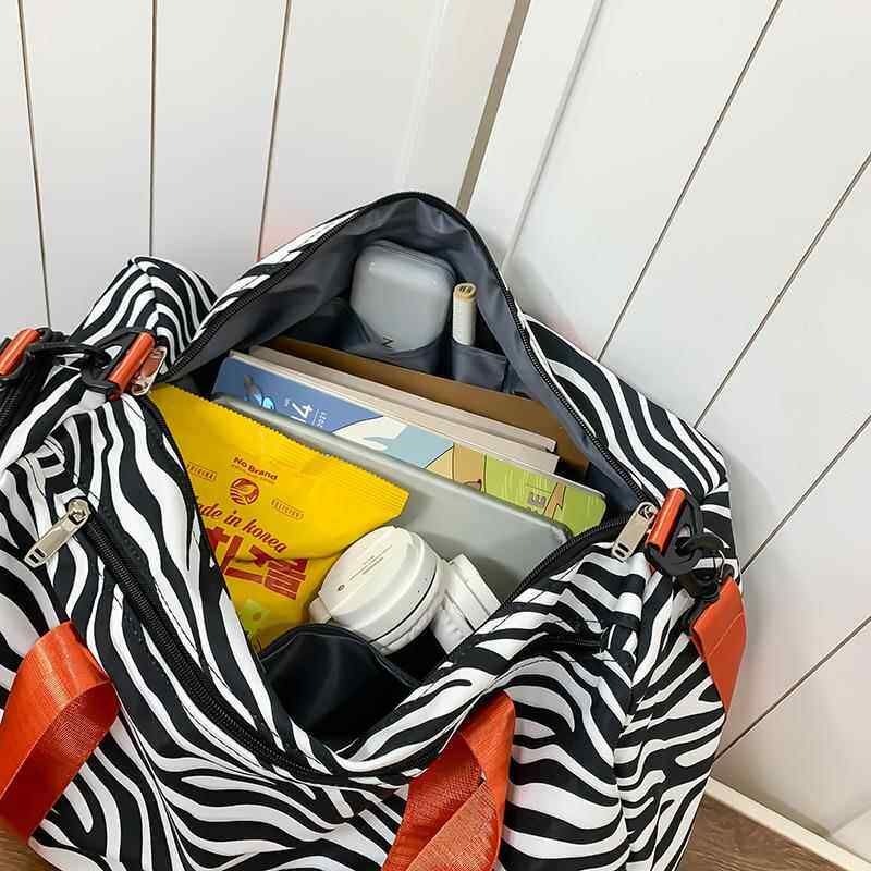 新款豹纹大容量旅行包干湿分离独立鞋仓健身包短途出差单肩斜挎包