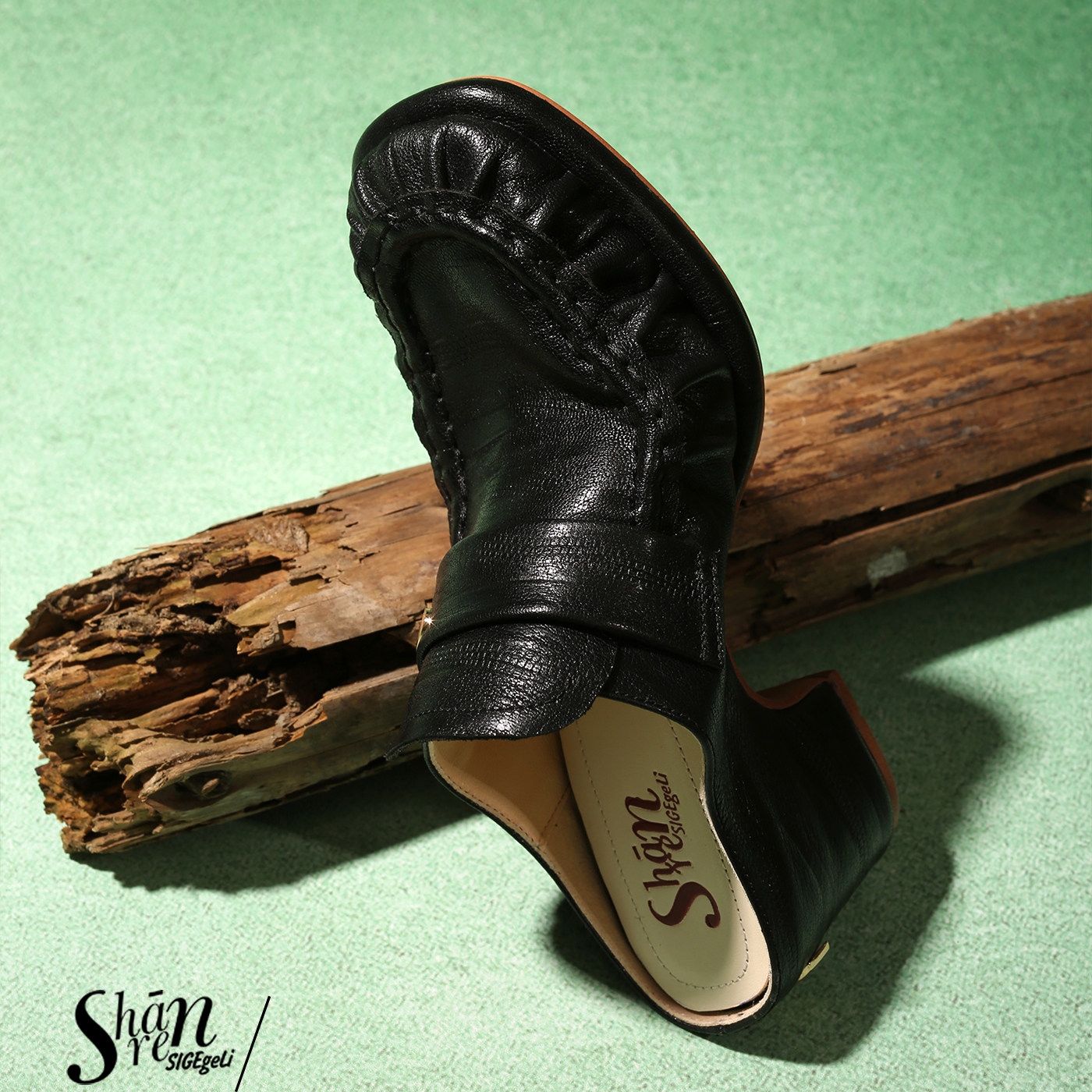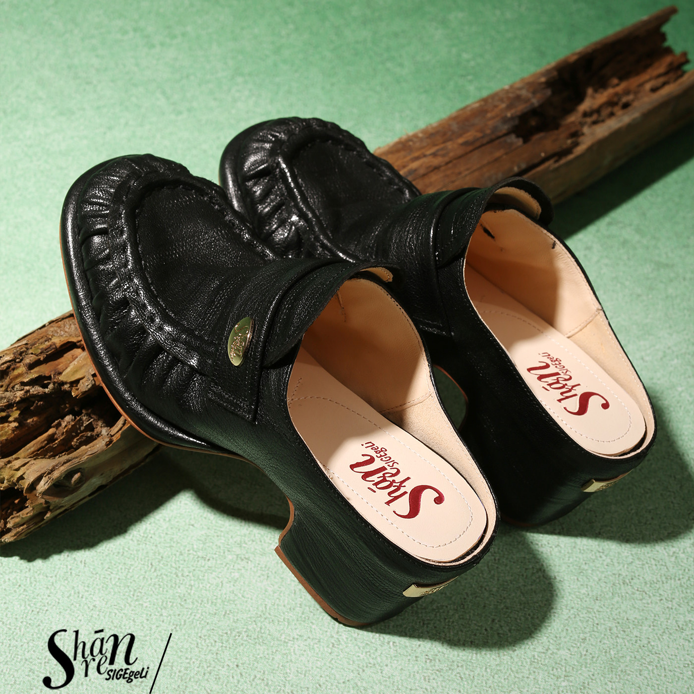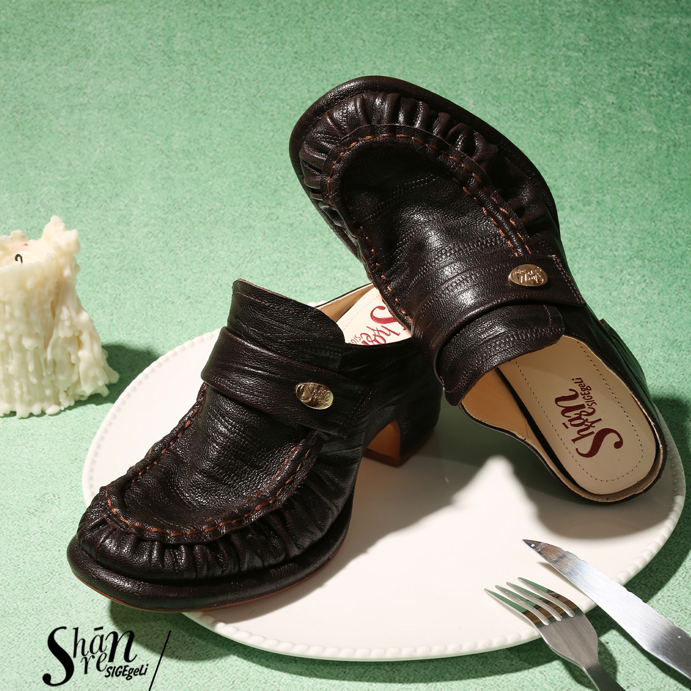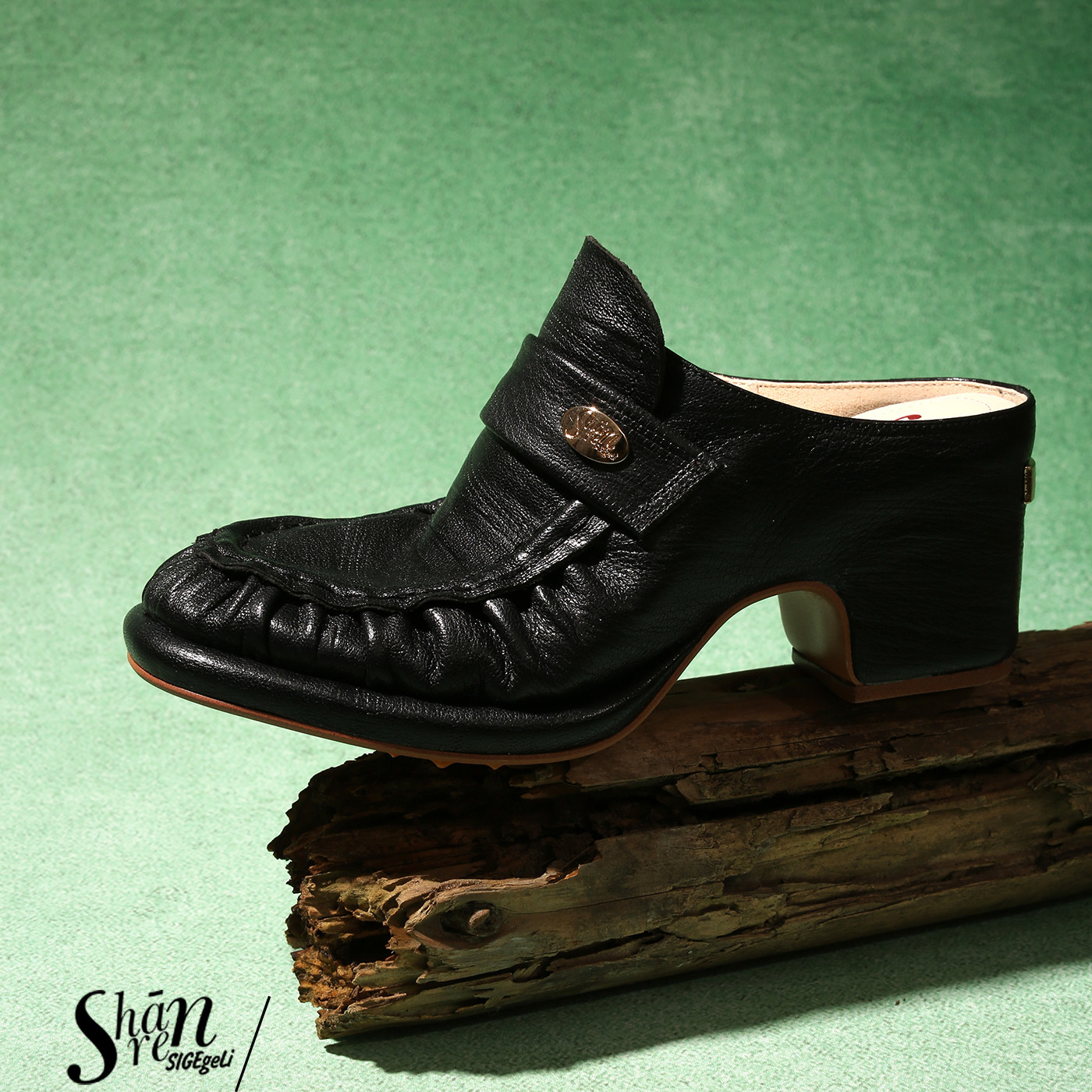 ShānRen 法式复古风 真皮包头拖鞋女夏外穿 粗高跟穆勒鞋高级感
