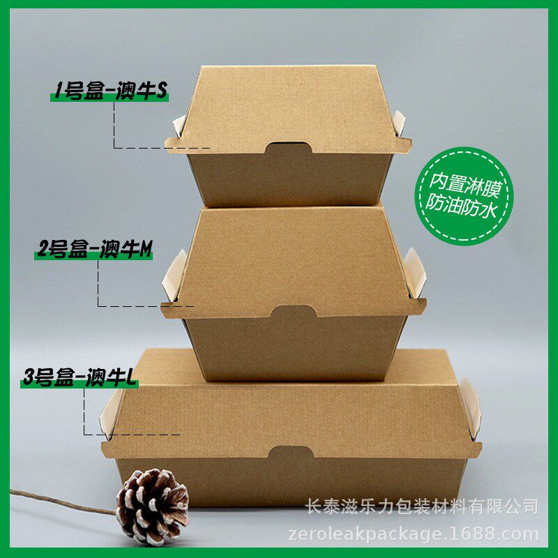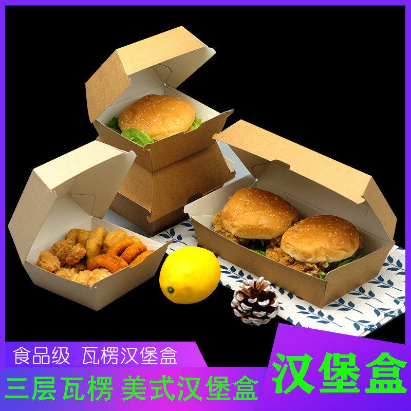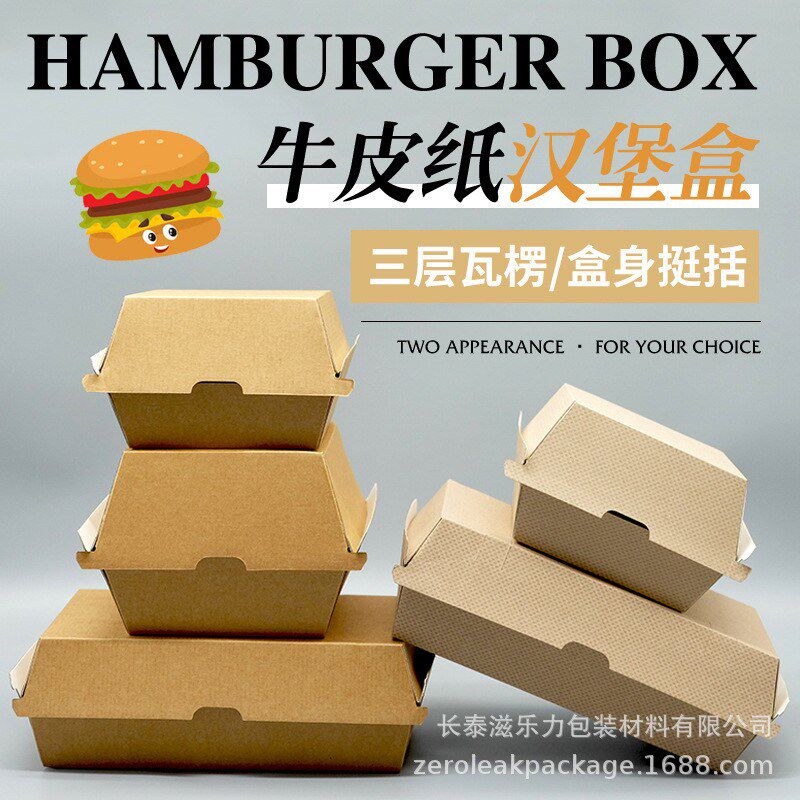 一次性大号瓦g楞牛皮纸汉堡盒热狗油炸小吃打包盒方形外卖餐盒