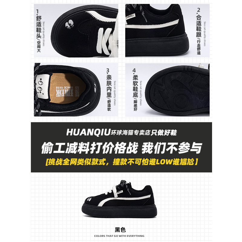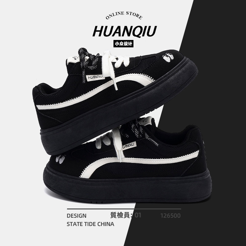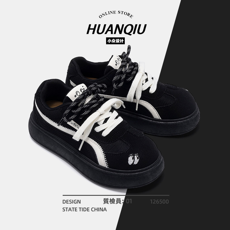 环球厚底德训鞋女款2025新款夏季透气女鞋百搭休闲黑色板鞋子女款