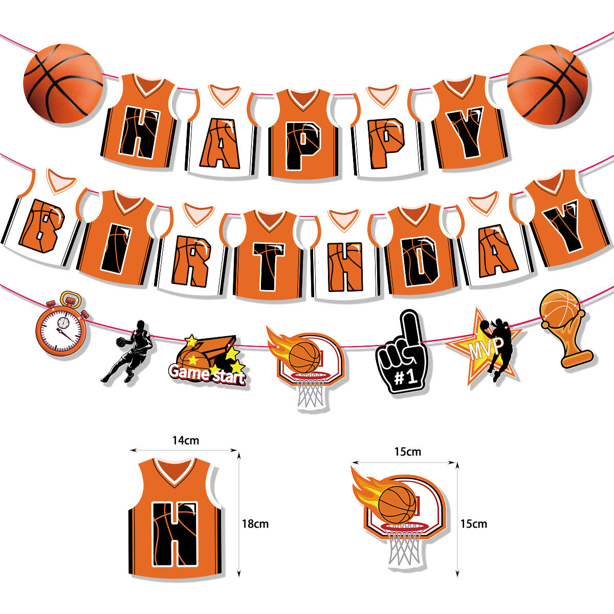 篮球主题生日派对NBA篮球服背景装饰套装拉旗蛋糕插牌卡通气球