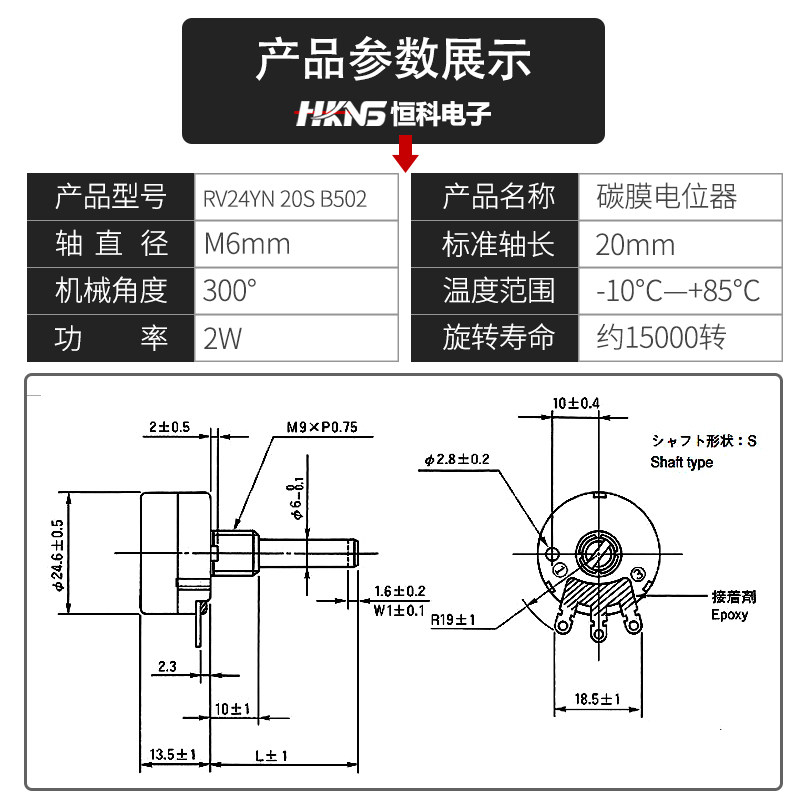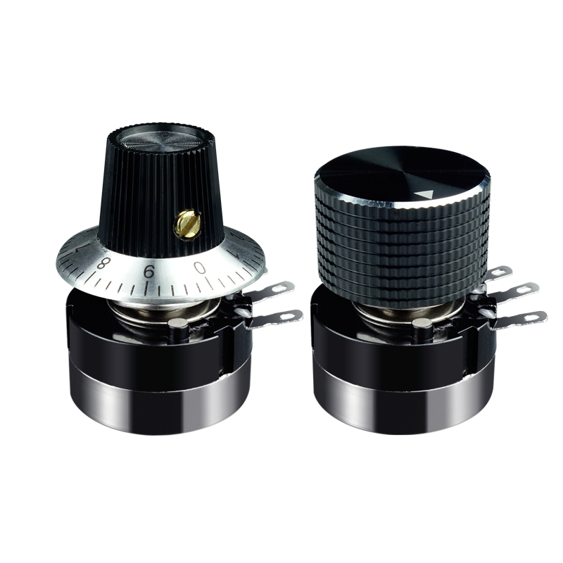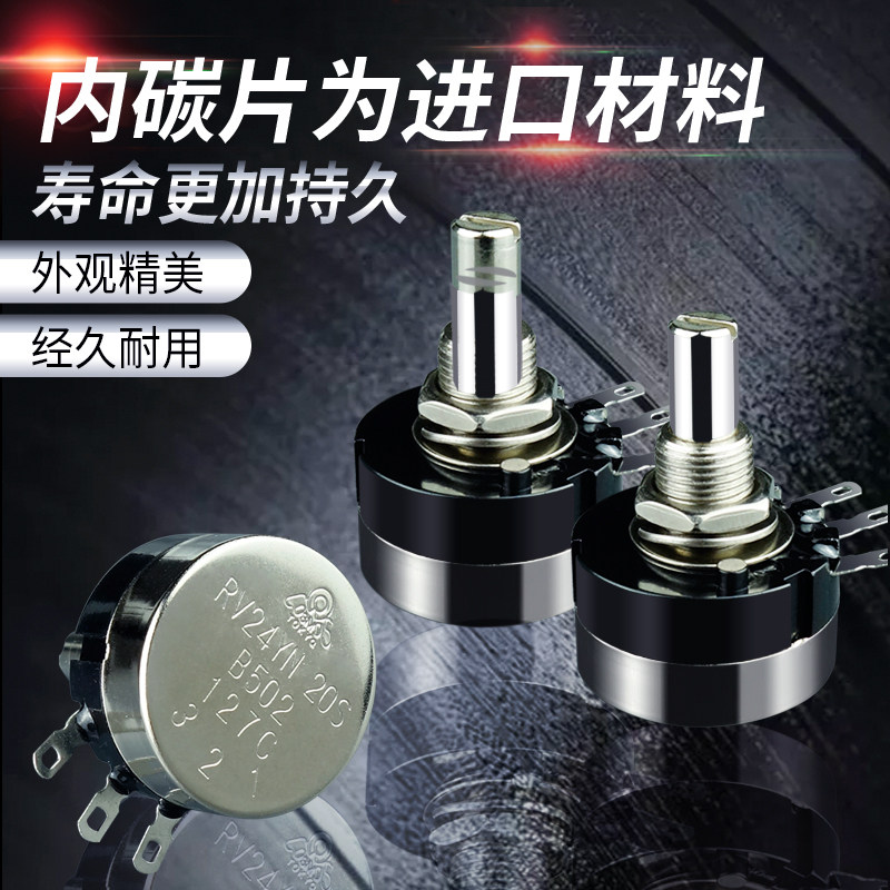 RV24YN 20S B502碳膜电位器 可调开关1k5k10k配刻度 铝合金旋钮帽