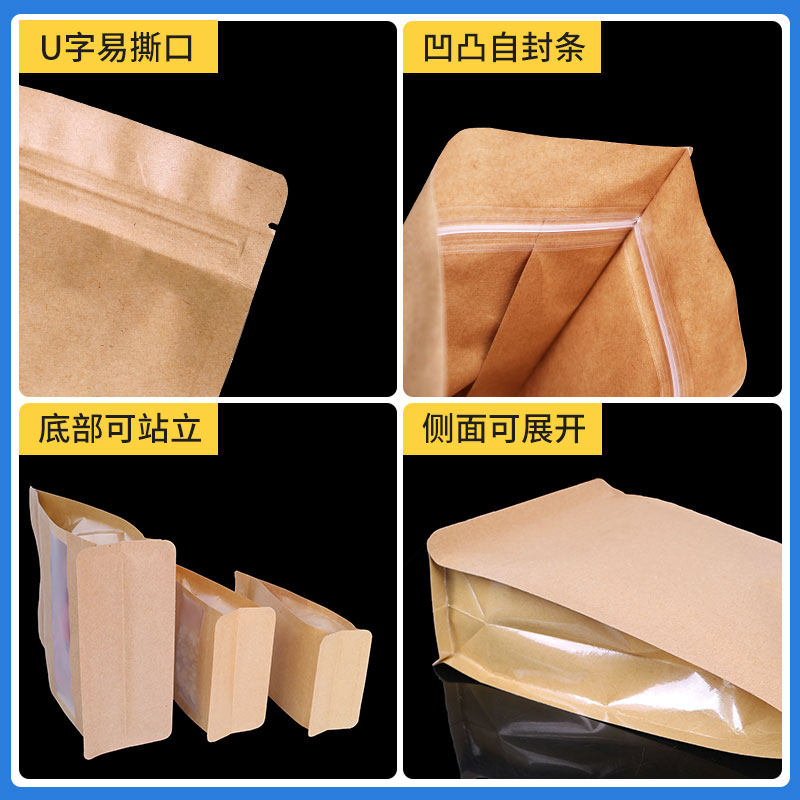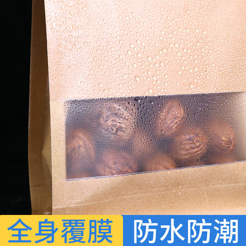 八边开窗牛皮纸自封袋茶叶红枣牛肉干果蜜饯塑料食品密封包装袋子